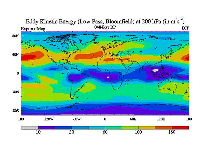 Low Pass Eddy Kinetic Energy at 200 hPa