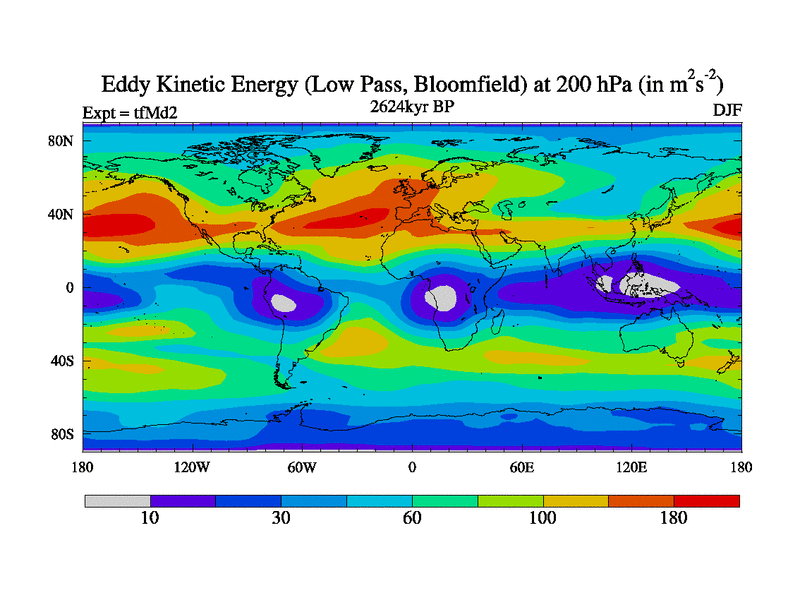 Low Pass Eddy Kinetic Energy at 200 hPa