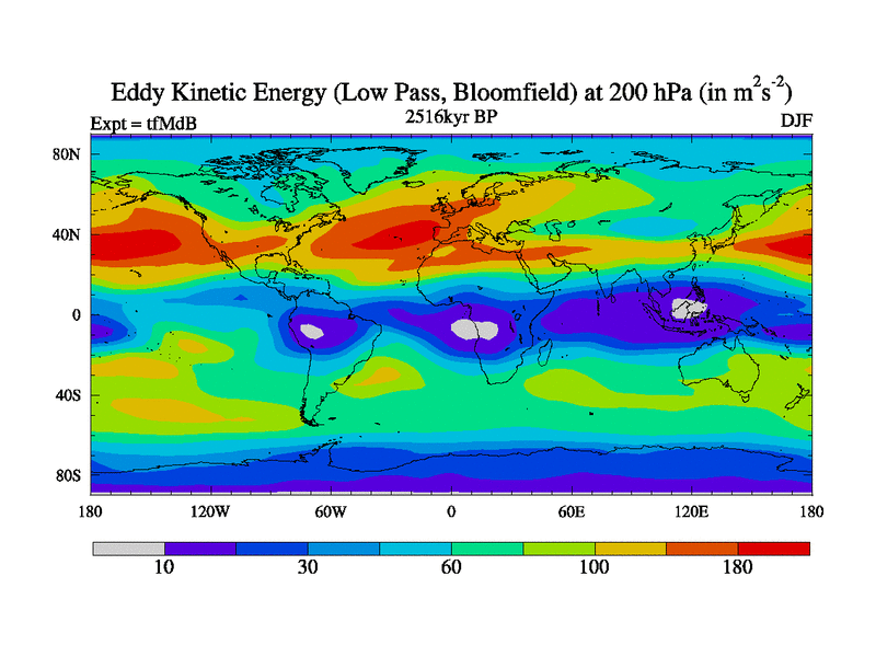 Low Pass Eddy Kinetic Energy at 200 hPa