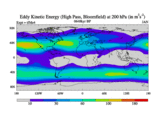 Low Pass Eddy Kinetic Energy at 200 hPa