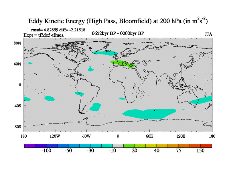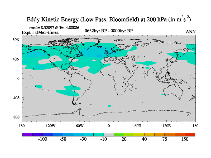 Low Pass Eddy Kinetic Energy at 200 hPa