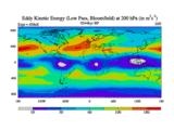 Low Pass Eddy Kinetic Energy at 200 hPa