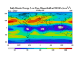 Low Pass Eddy Kinetic Energy at 200 hPa