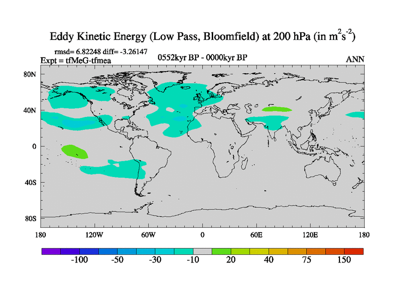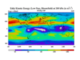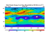 Low Pass Eddy Kinetic Energy at 200 hPa