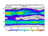 High Pass Eddy Kinetic Energy at 200 hPa
