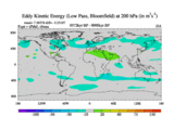 Low Pass Eddy Kinetic Energy at 200 hPa