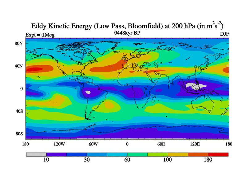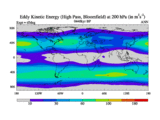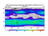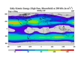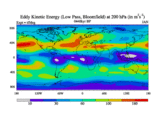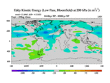 Low Pass Eddy Kinetic Energy at 200 hPa