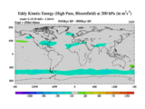 Low Pass Eddy Kinetic Energy at 200 hPa