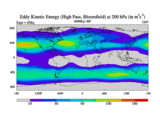 Low Pass Eddy Kinetic Energy at 200 hPa