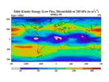 Low Pass Eddy Kinetic Energy at 200 hPa