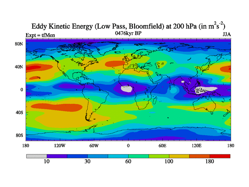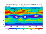 Low Pass Eddy Kinetic Energy at 200 hPa