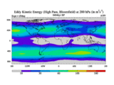 Low Pass Eddy Kinetic Energy at 200 hPa
