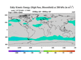 Low Pass Eddy Kinetic Energy at 200 hPa