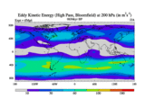 Low Pass Eddy Kinetic Energy at 200 hPa