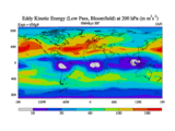 Low Pass Eddy Kinetic Energy at 200 hPa