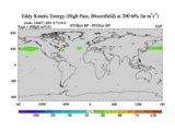 Low Pass Eddy Kinetic Energy at 200 hPa