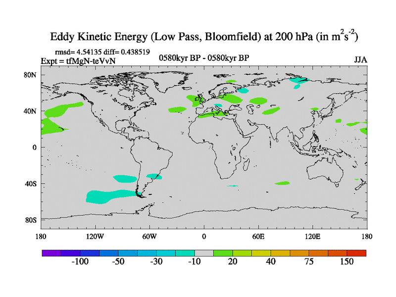 Low Pass Eddy Kinetic Energy at 200 hPa