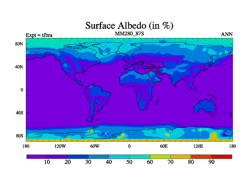 This is a Middle Miocene simulation with CO2 set to 280ppm. It has an ice sheet from 87S to the pole.. It uses MOSES2.1 with triffid equilibrium. It continues on from tfbha. Soil albedo is set to 0.31.