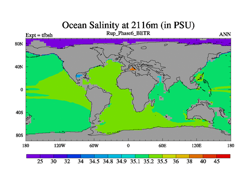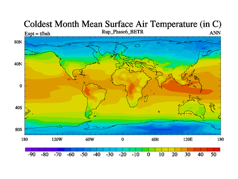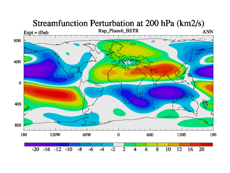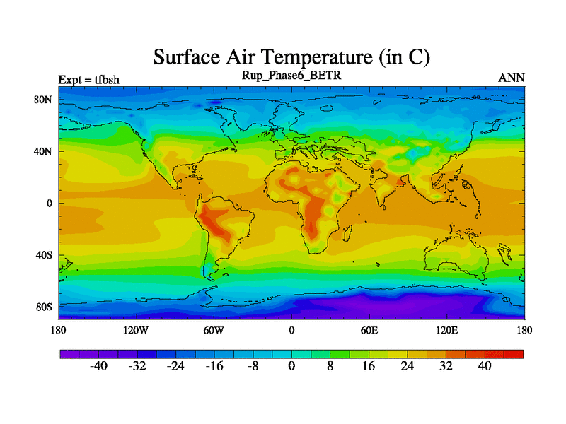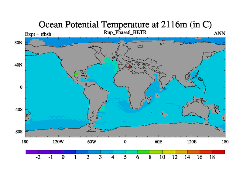 Rupelian simulation. 6000 years. 100 year mean. Phase 6 model. BETR modifications simulation. 2xCO2.