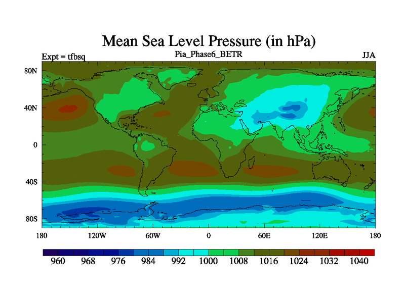 Piacenzian simulation. 6000 years. 100 year mean. Phase 6 model. BETR modifications simulation.