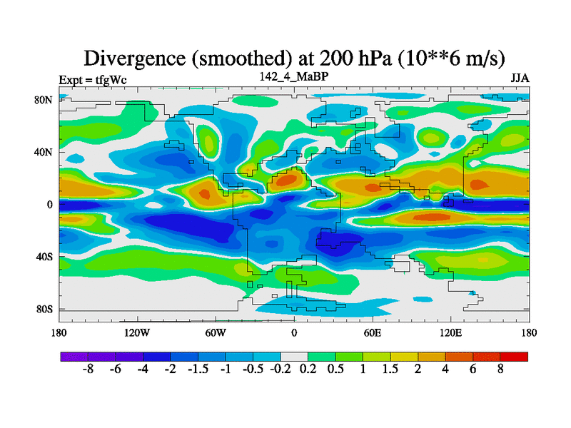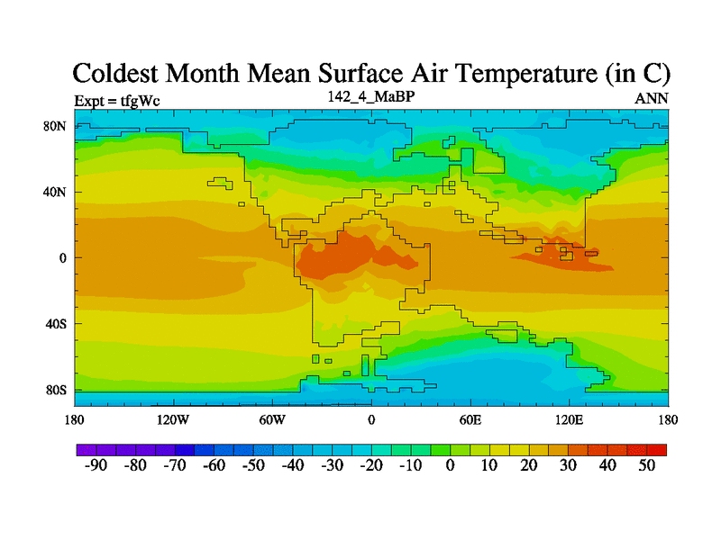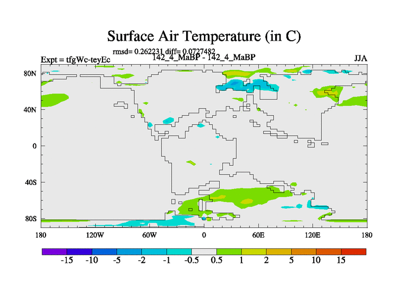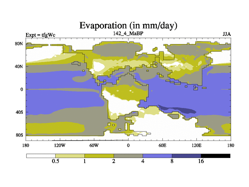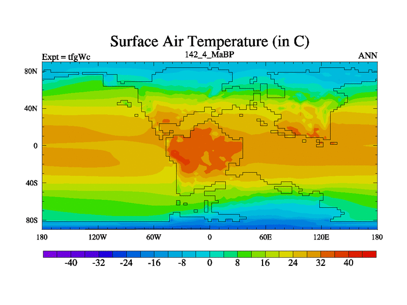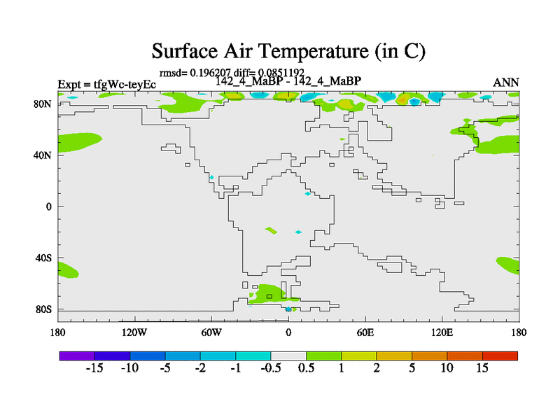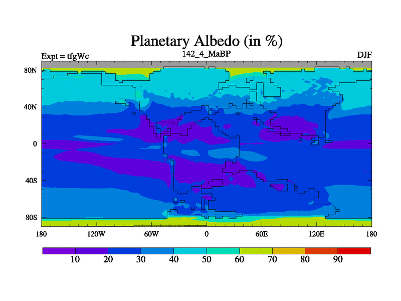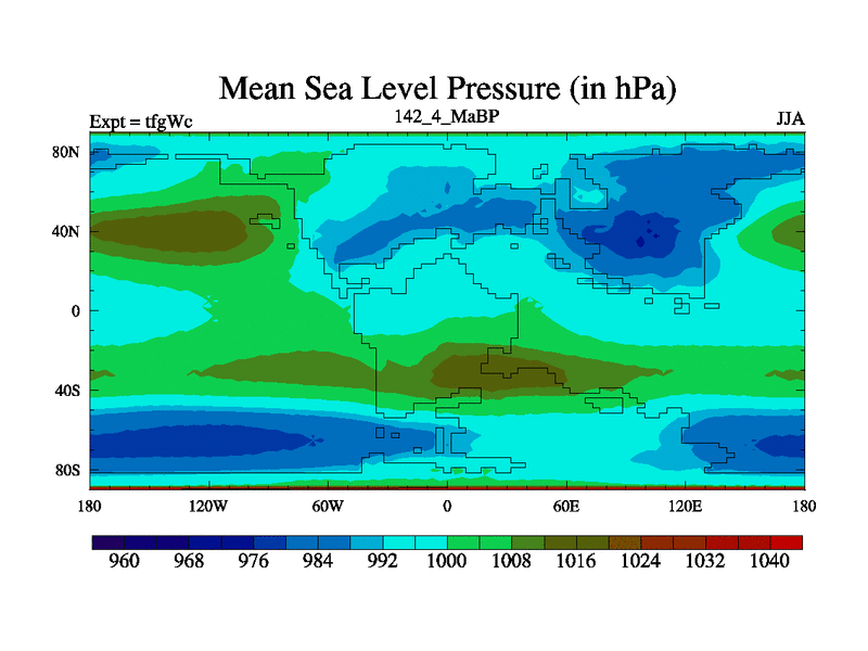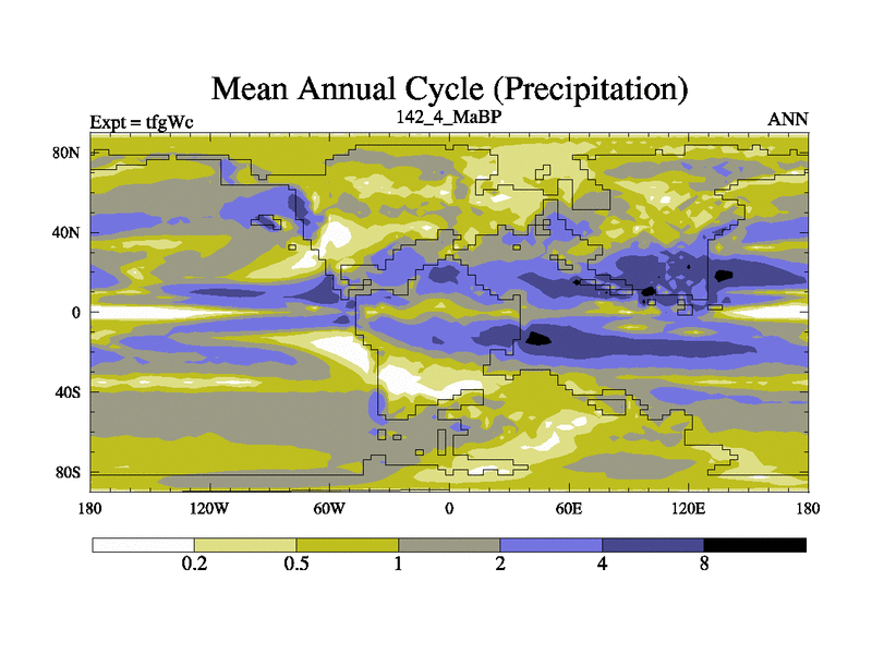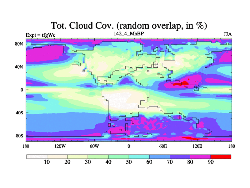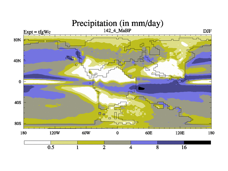 This is the 142.4 Ma simulation using the Scotese palaeogeographies and revised CCN etc. This version has islands included. Started from end of teyEc.