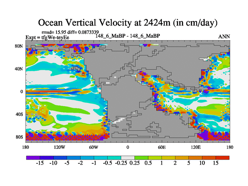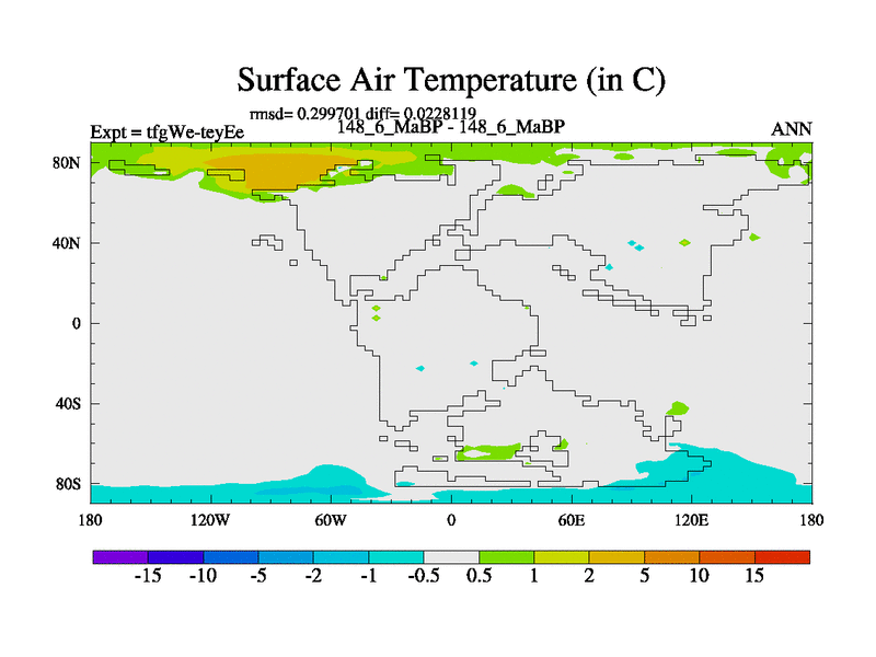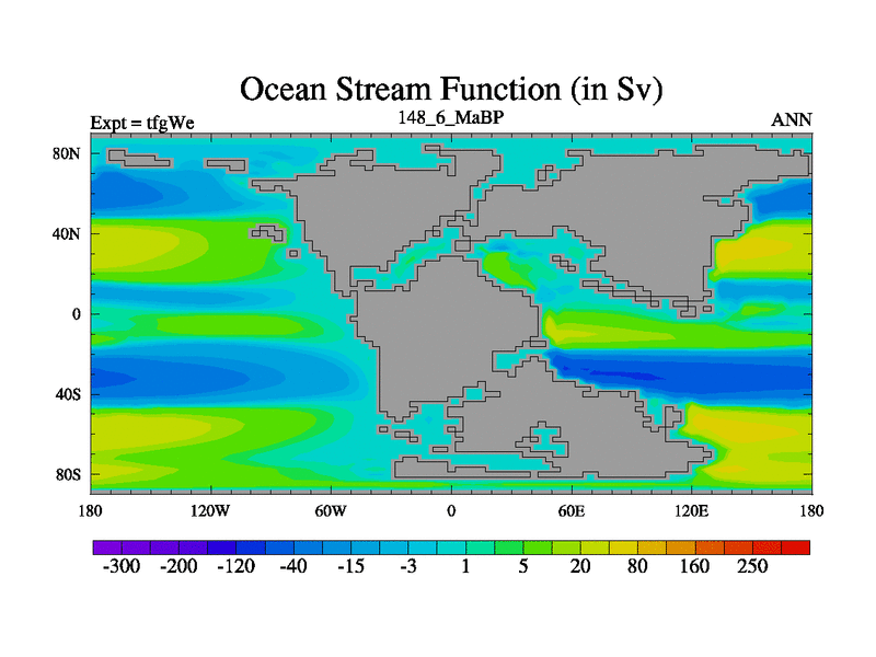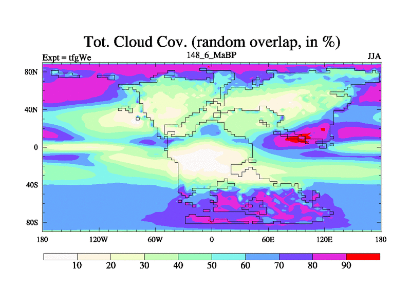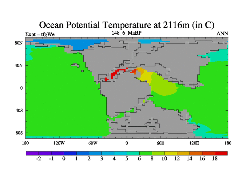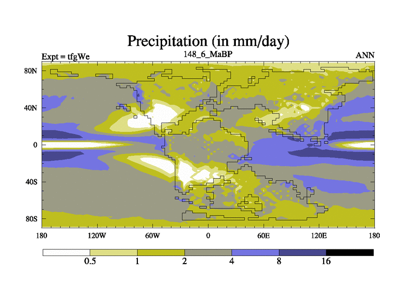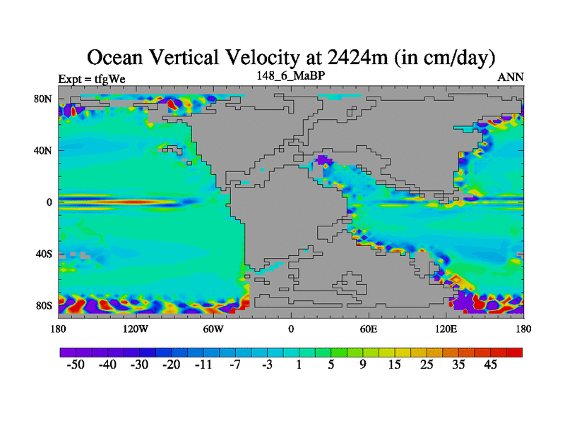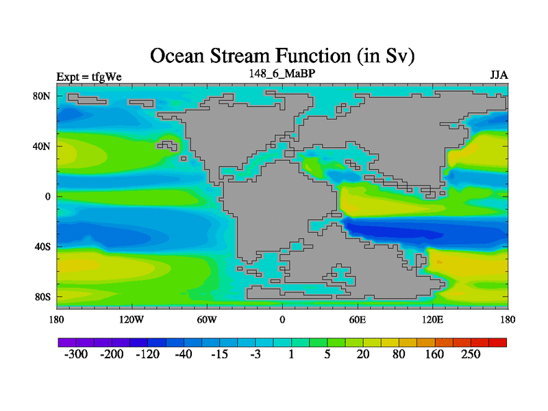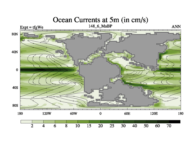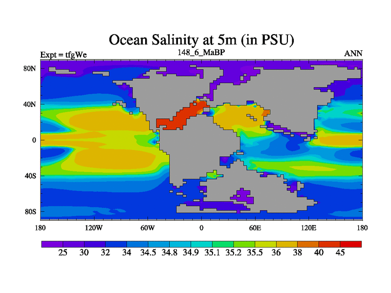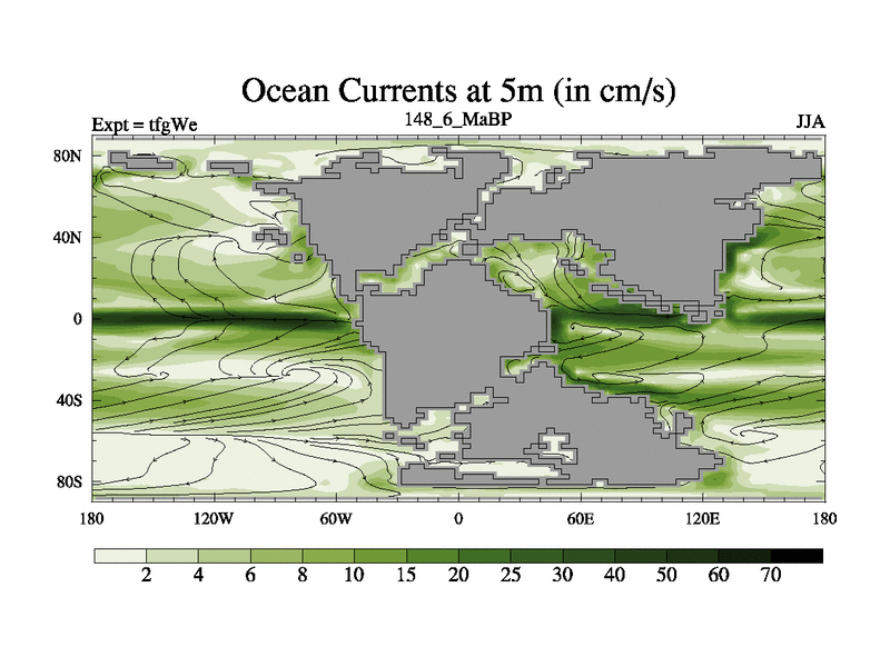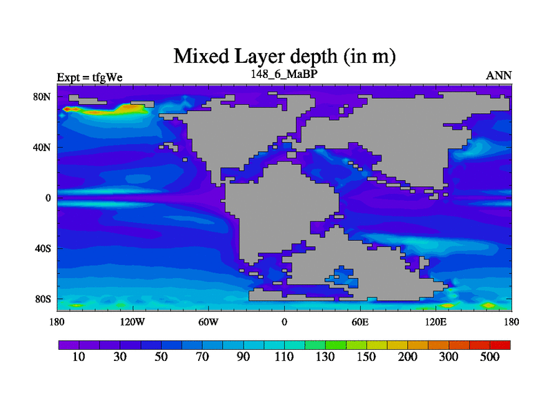 This is the 148.6 Ma simulation using the Scotese palaeogeographies and revised CCN etc. This version has islands included. Started from end of teyEe.