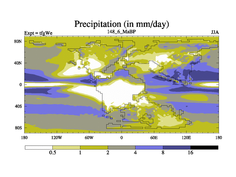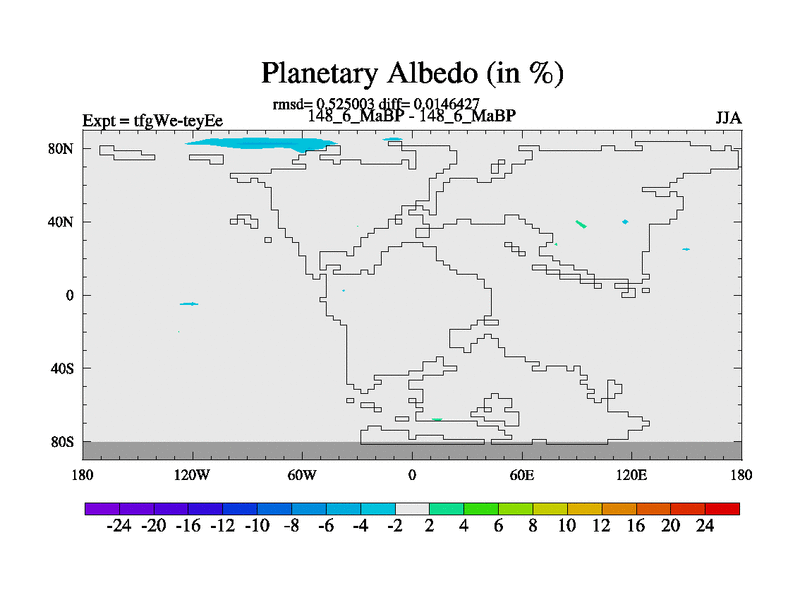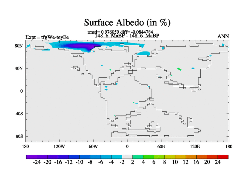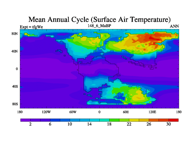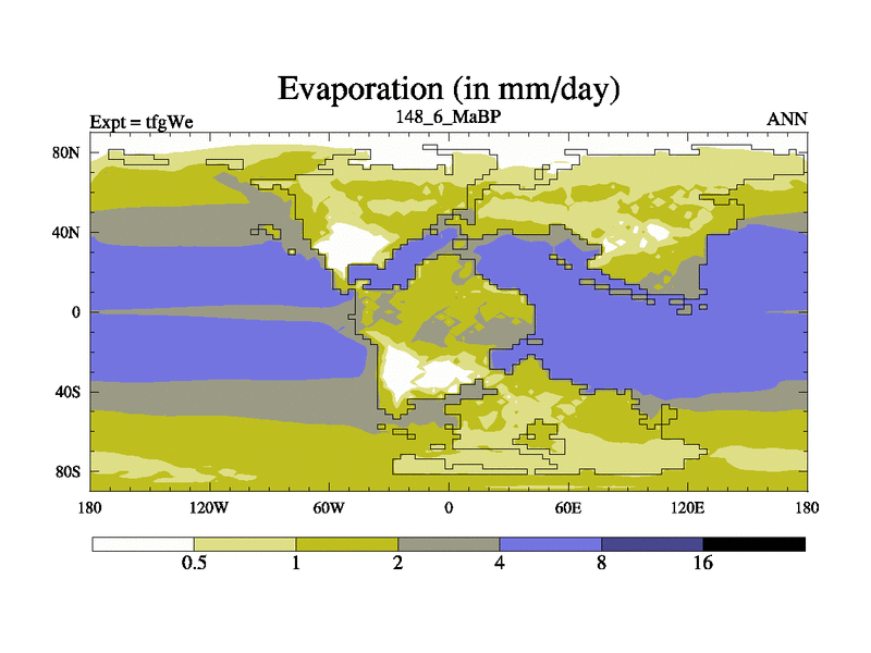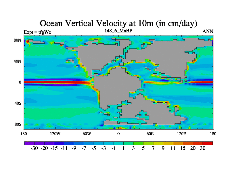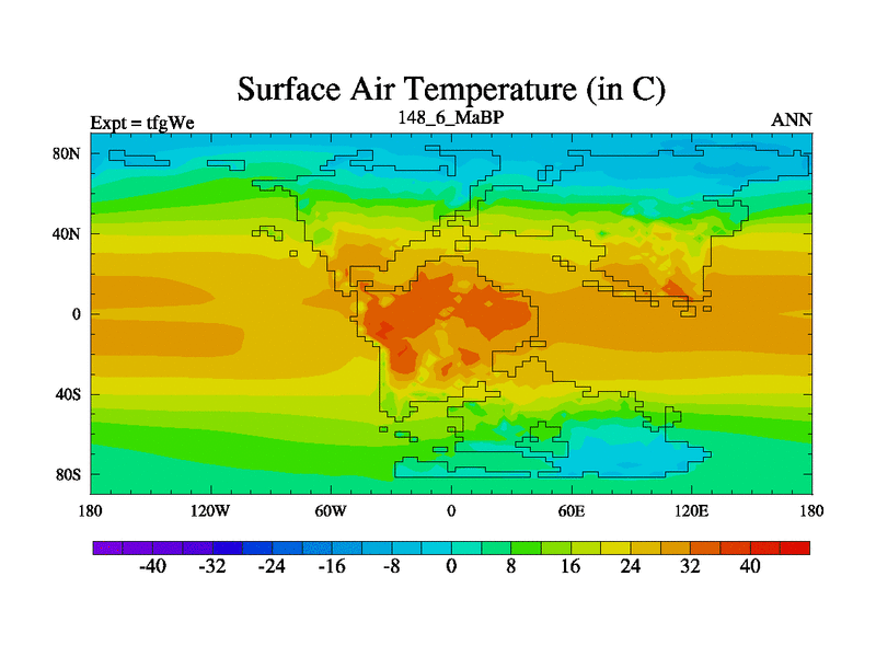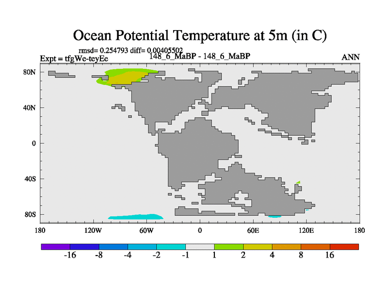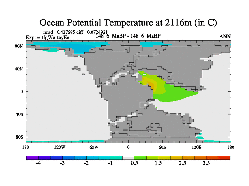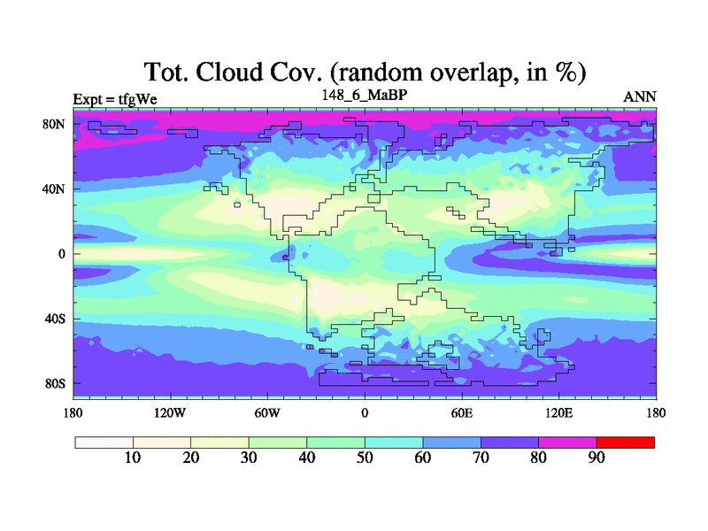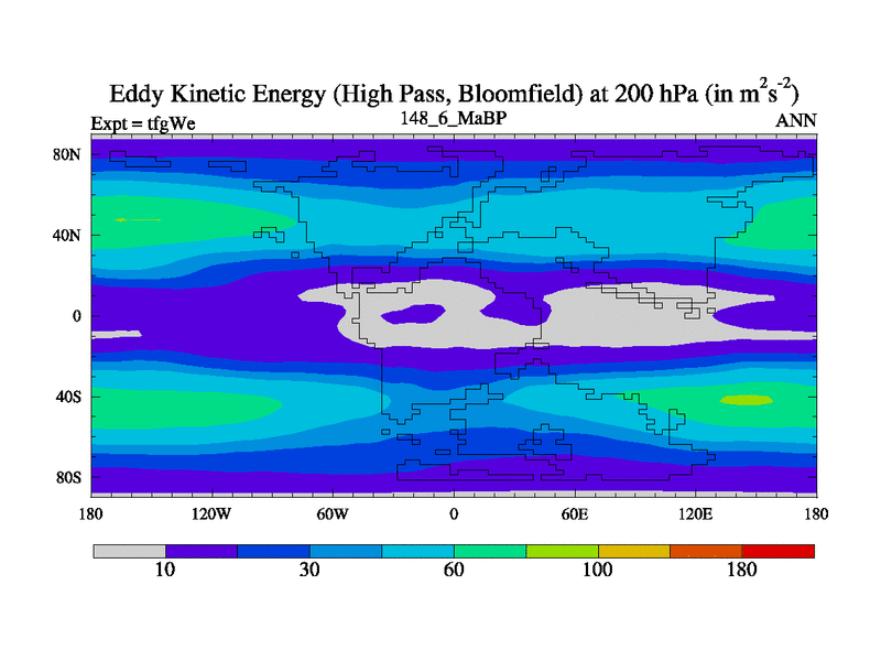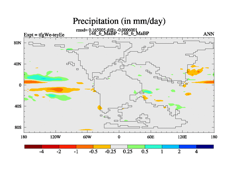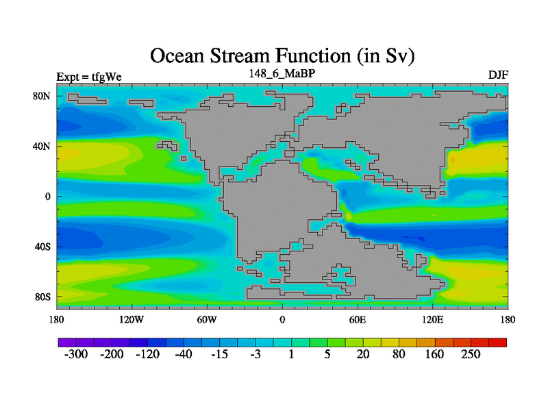 This is the 148.6 Ma simulation using the Scotese palaeogeographies and revised CCN etc. This version has islands included. Started from end of teyEe.
