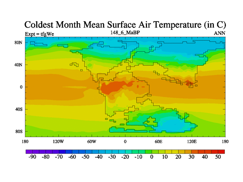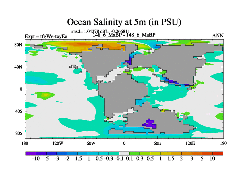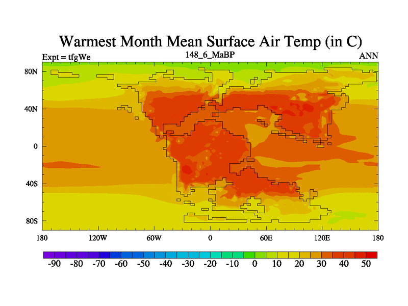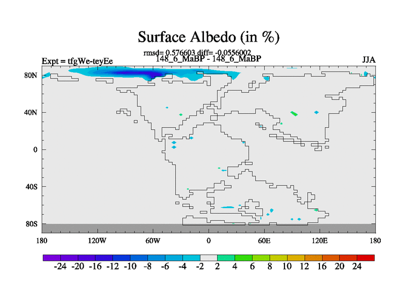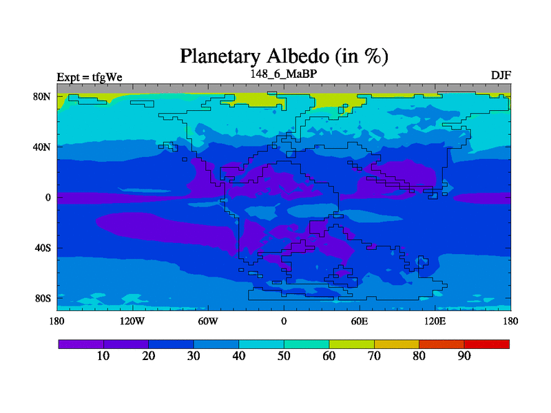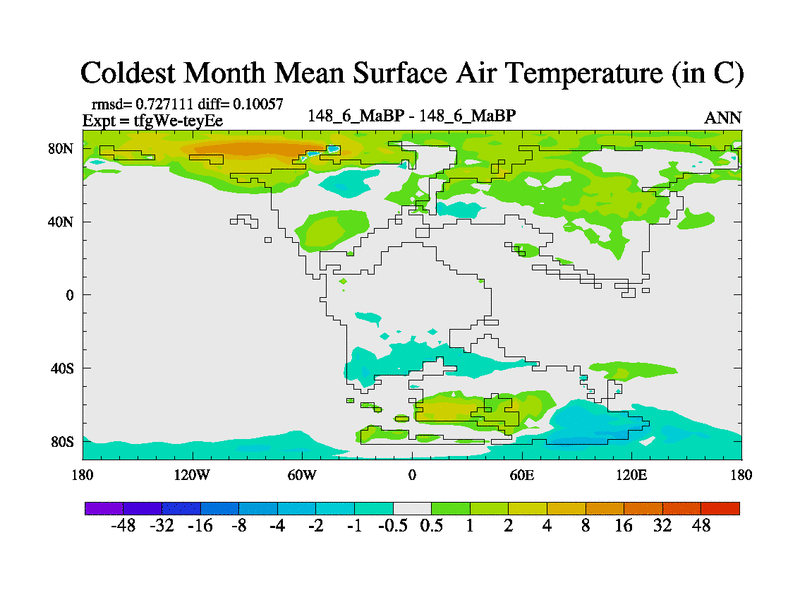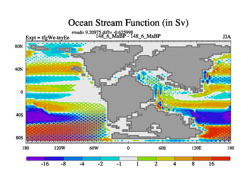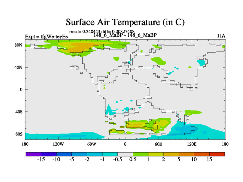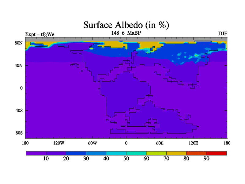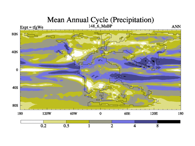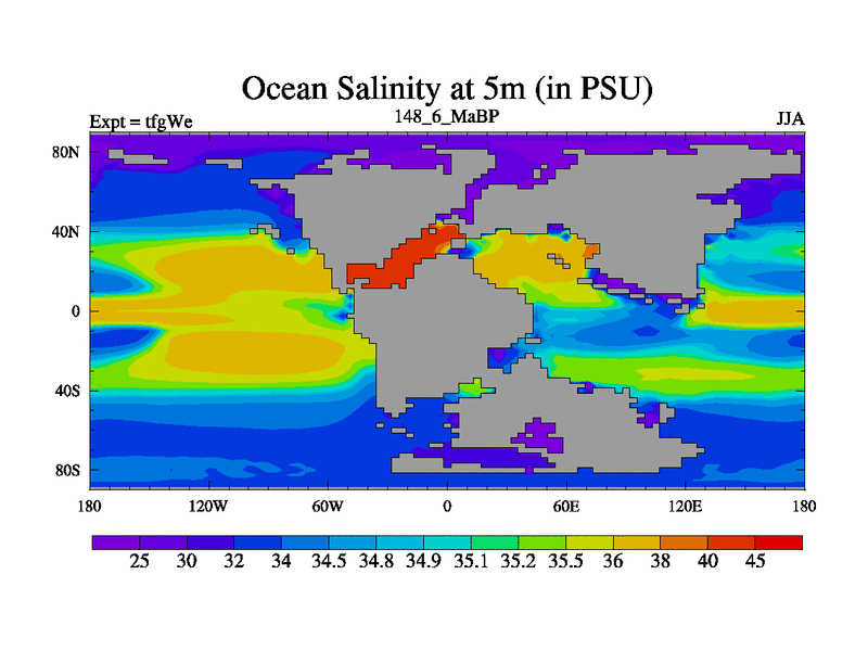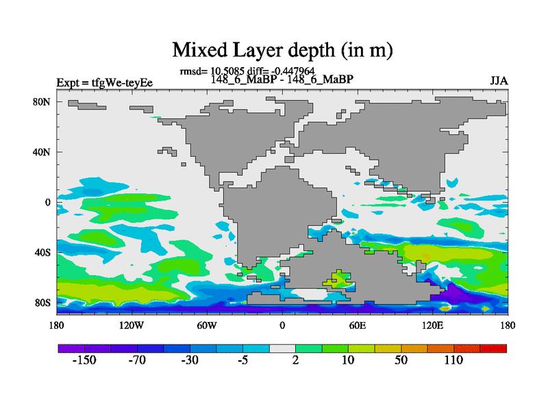 This is the 148.6 Ma simulation using the Scotese palaeogeographies and revised CCN etc. This version has islands included. Started from end of teyEe.