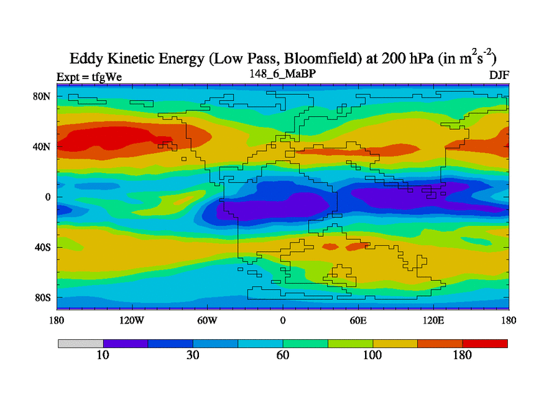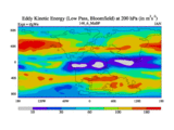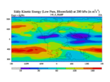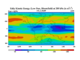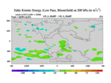 Low Pass Eddy Kinetic Energy at 200 hPa