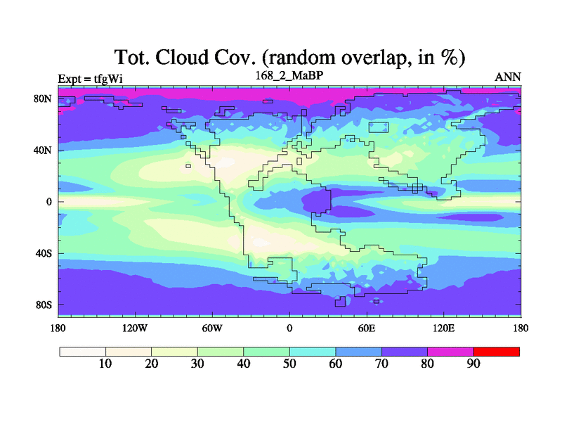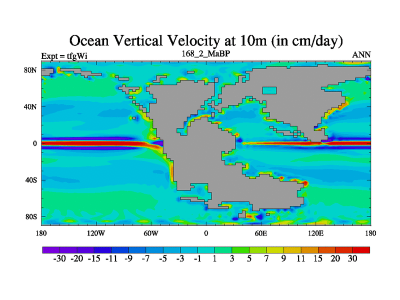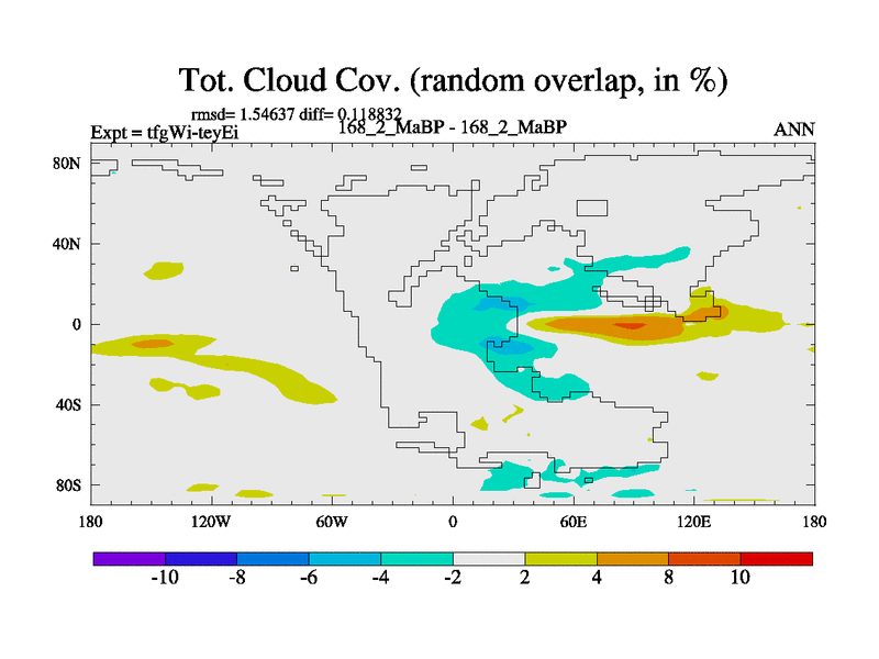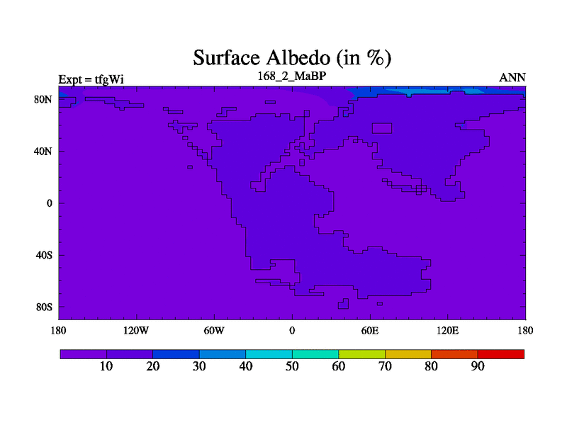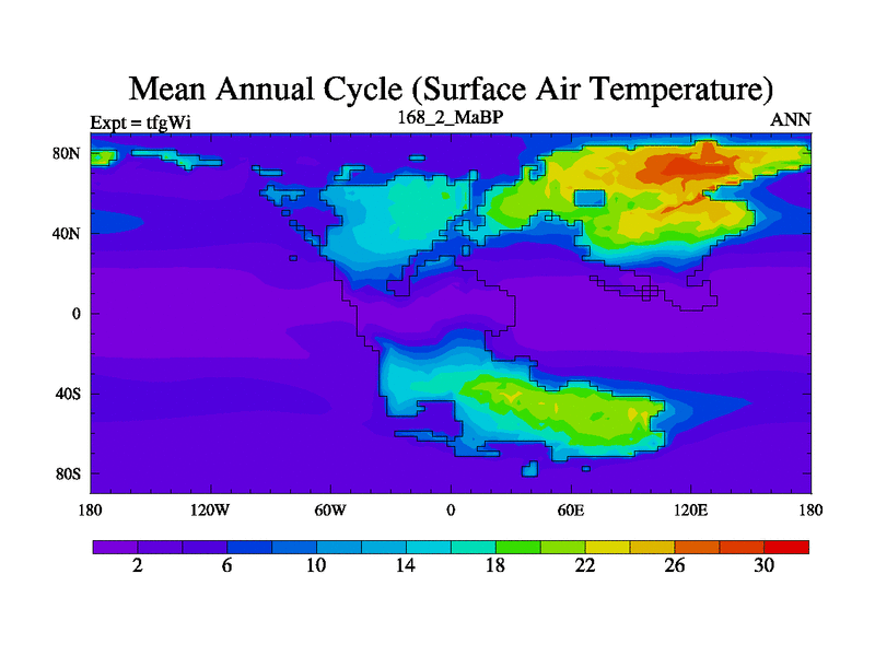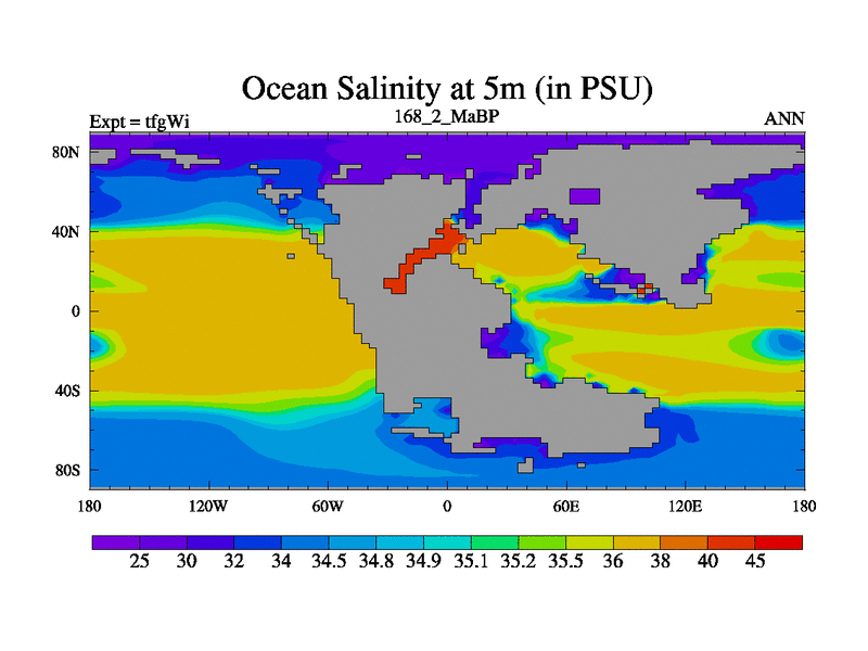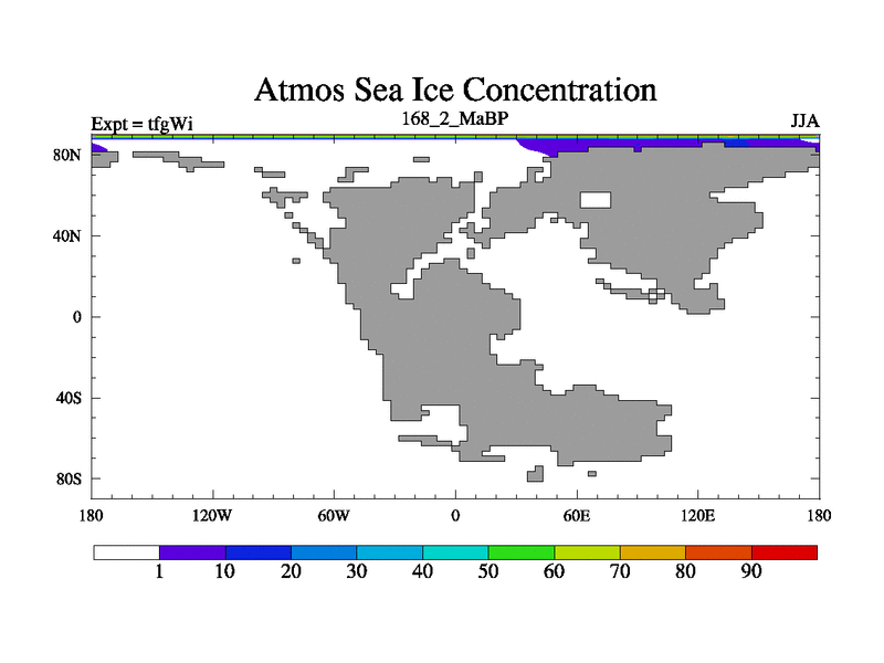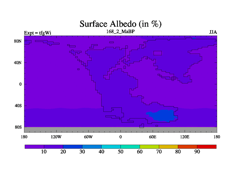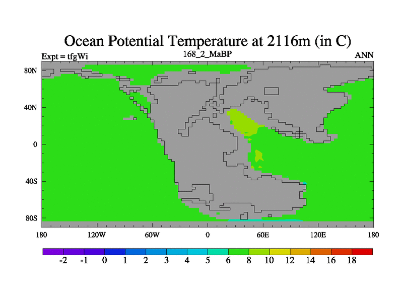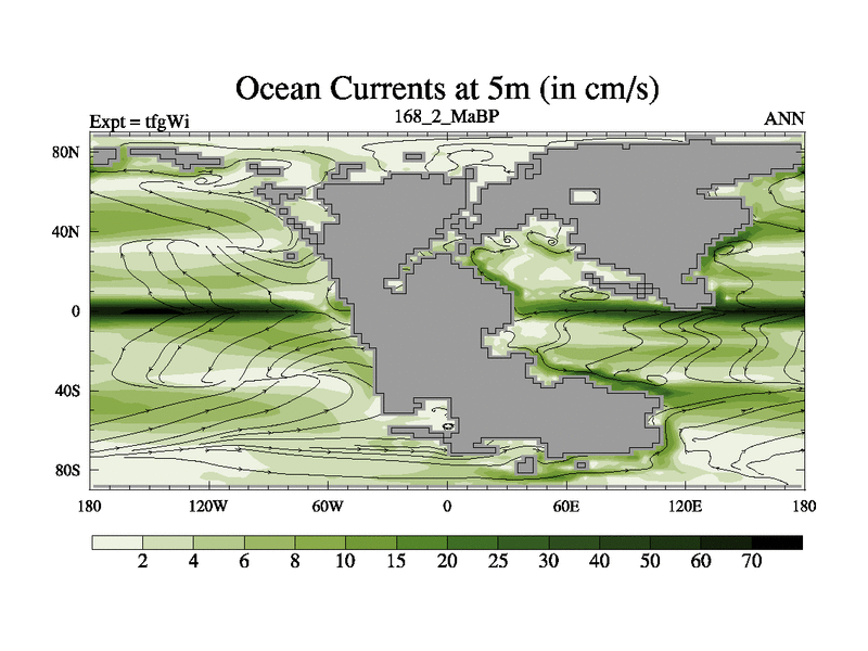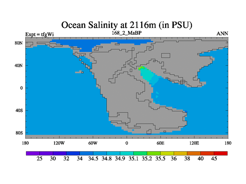 This is the 168.2 Ma simulation using the Scotese palaeogeographies and revised CCN etc. This version has islands included. Started from end of teyEi.