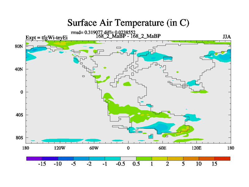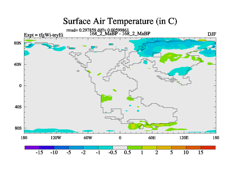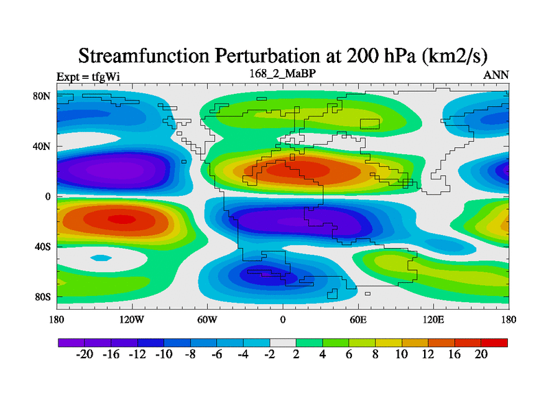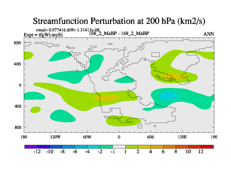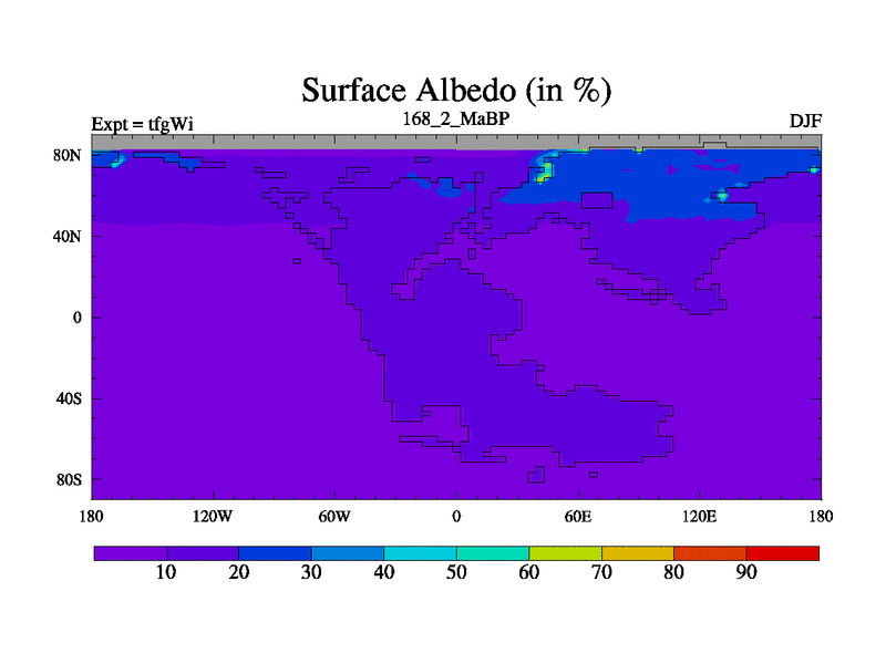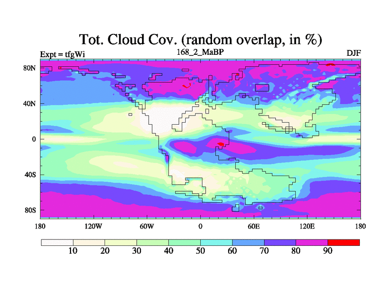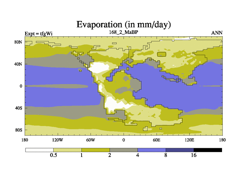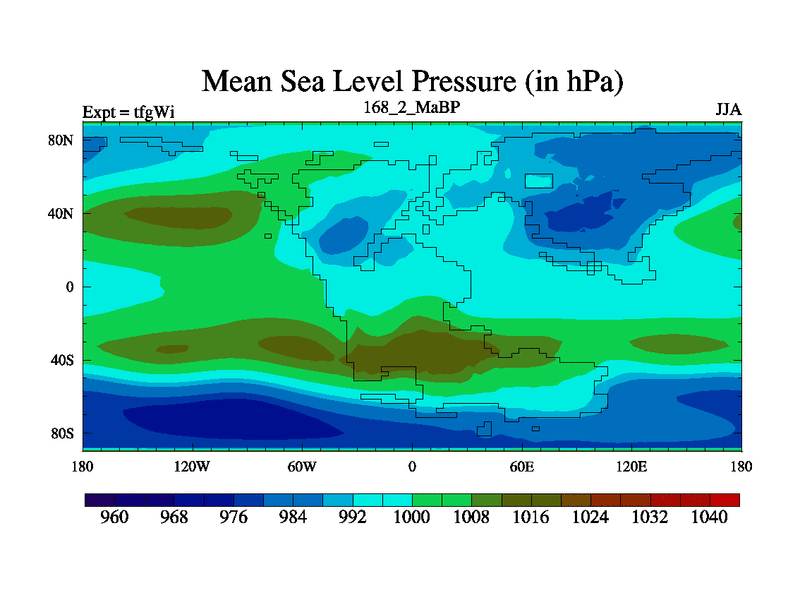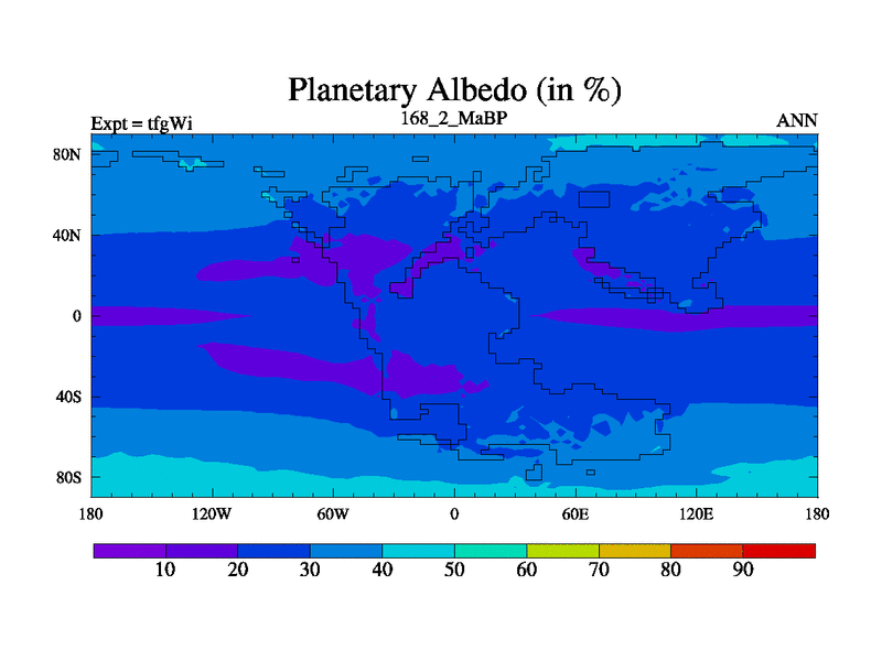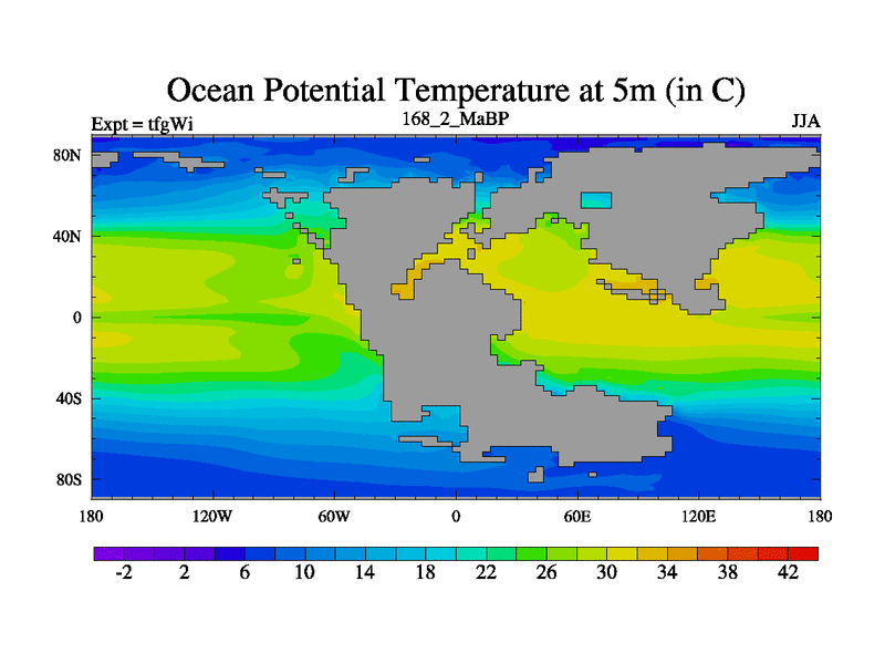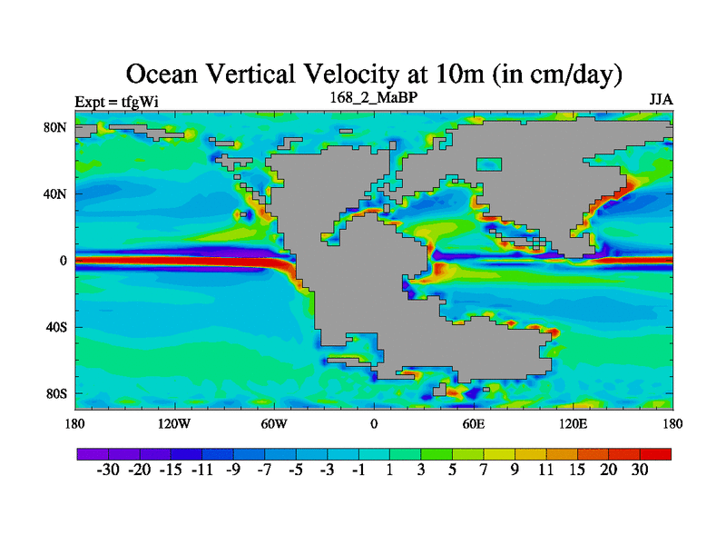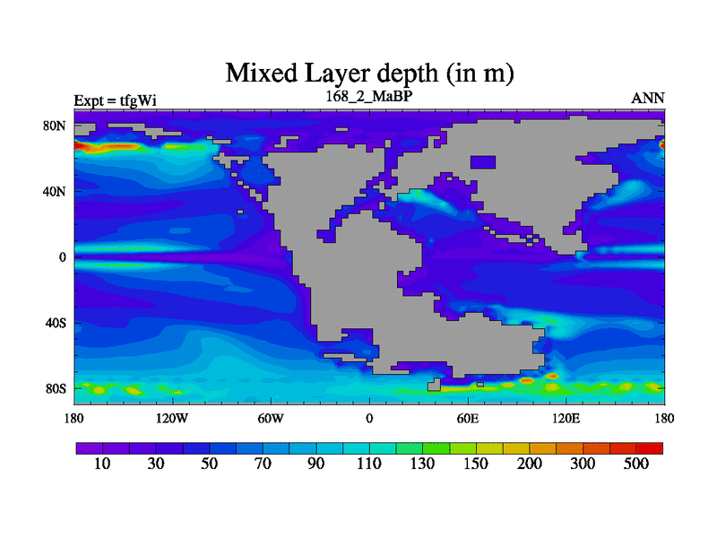 This is the 168.2 Ma simulation using the Scotese palaeogeographies and revised CCN etc. This version has islands included. Started from end of teyEi.