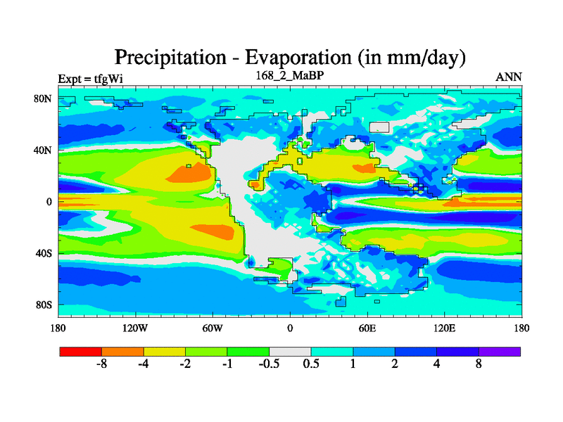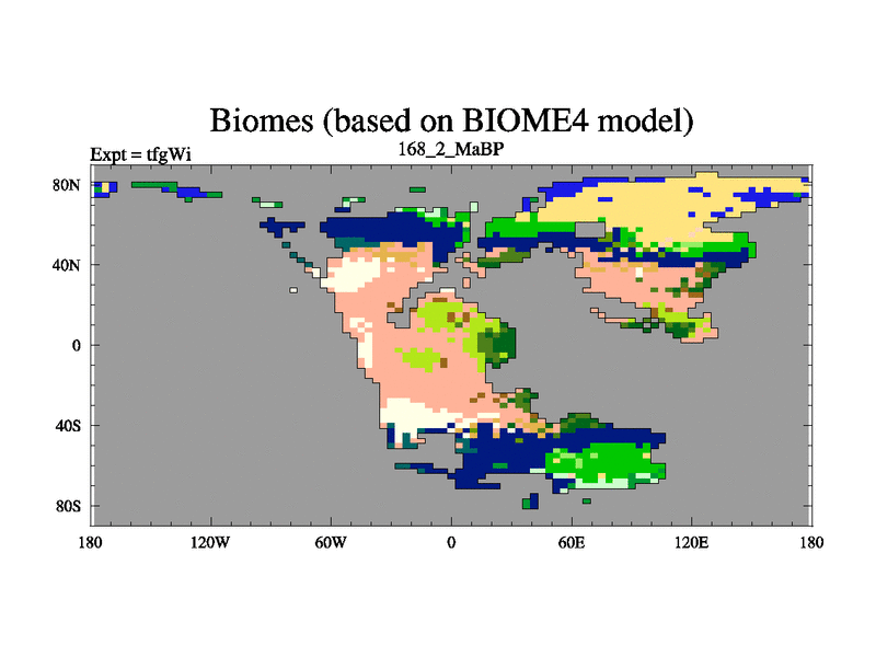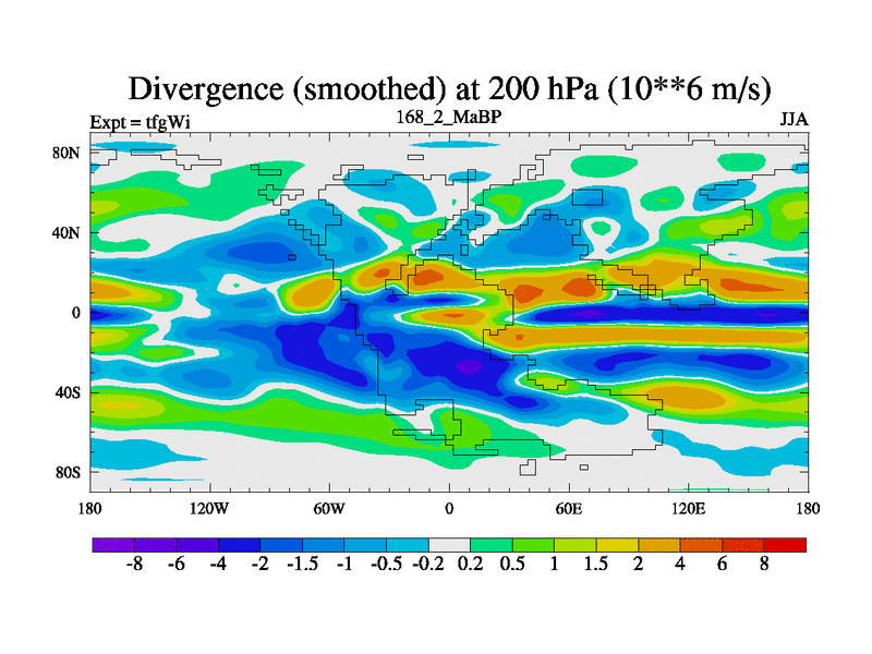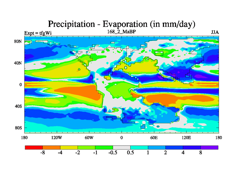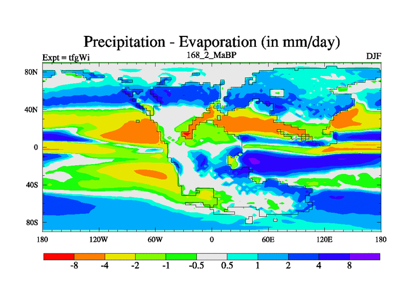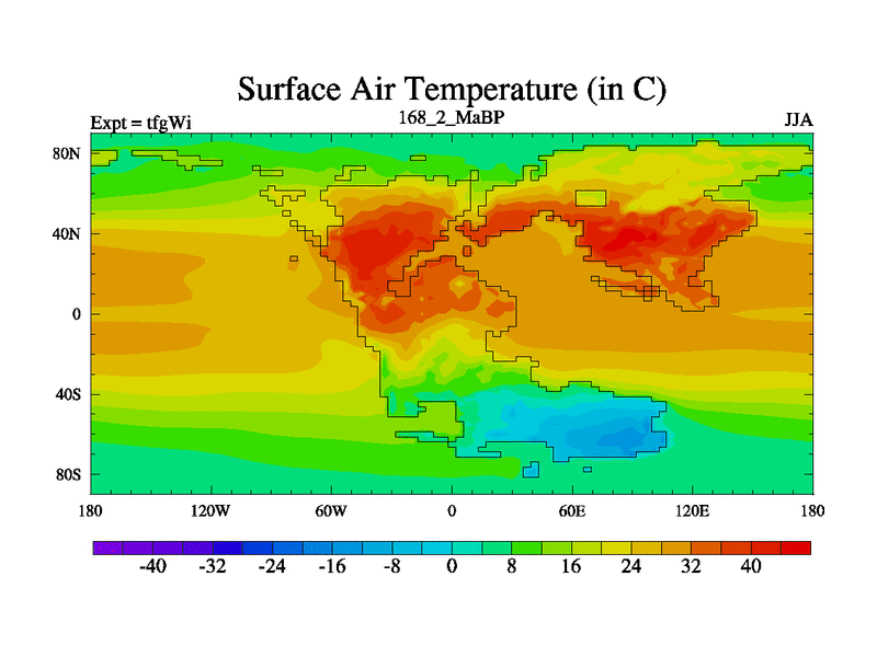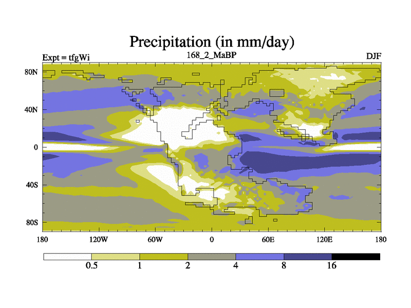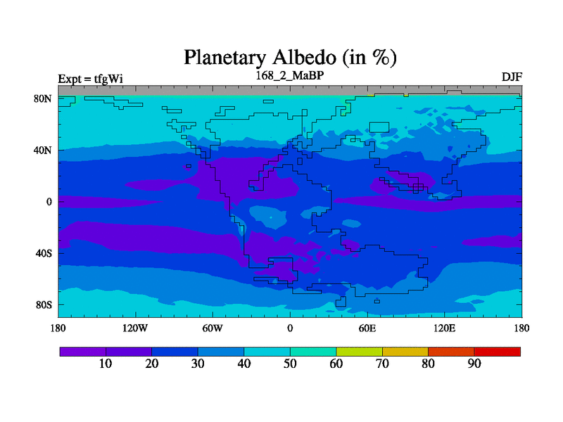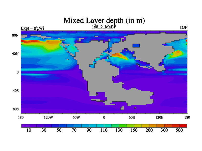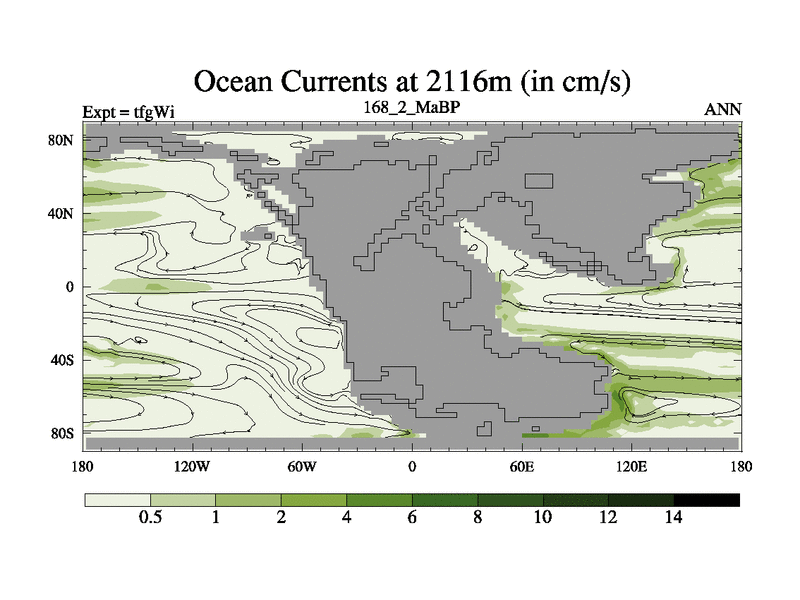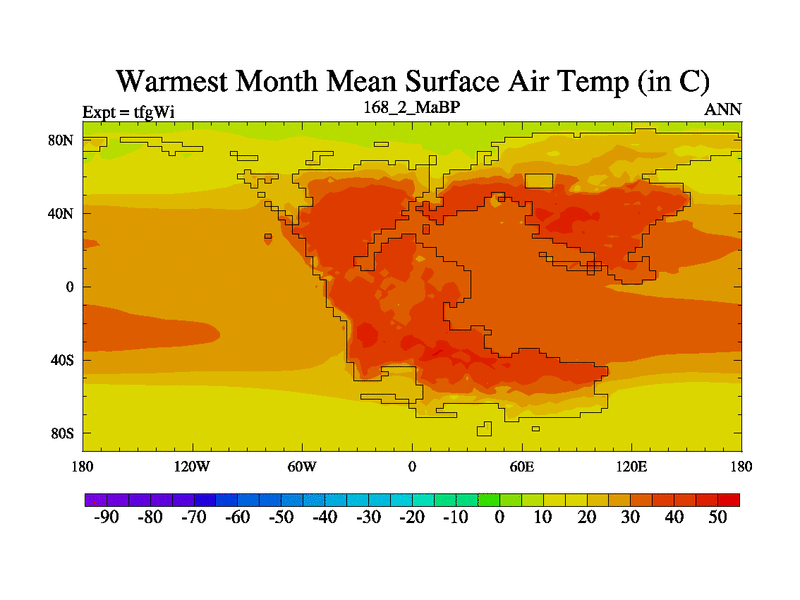 This is the 168.2 Ma simulation using the Scotese palaeogeographies and revised CCN etc. This version has islands included. Started from end of teyEi.