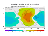 Low Pass Eddy Kinetic Energy at 200 hPa