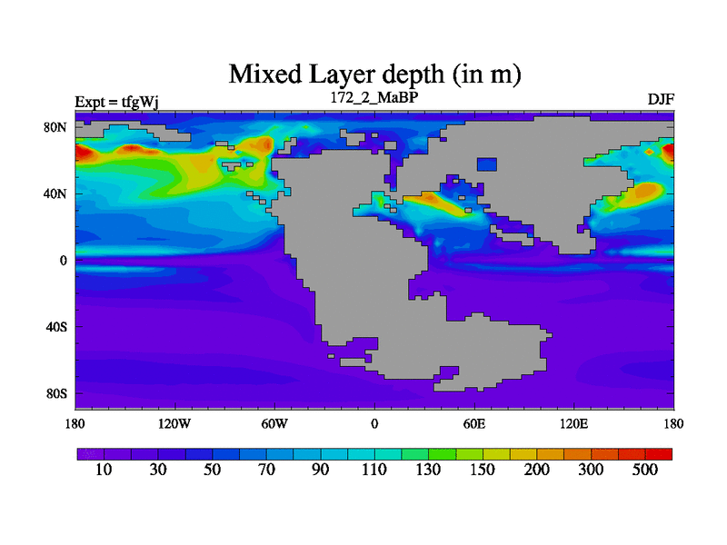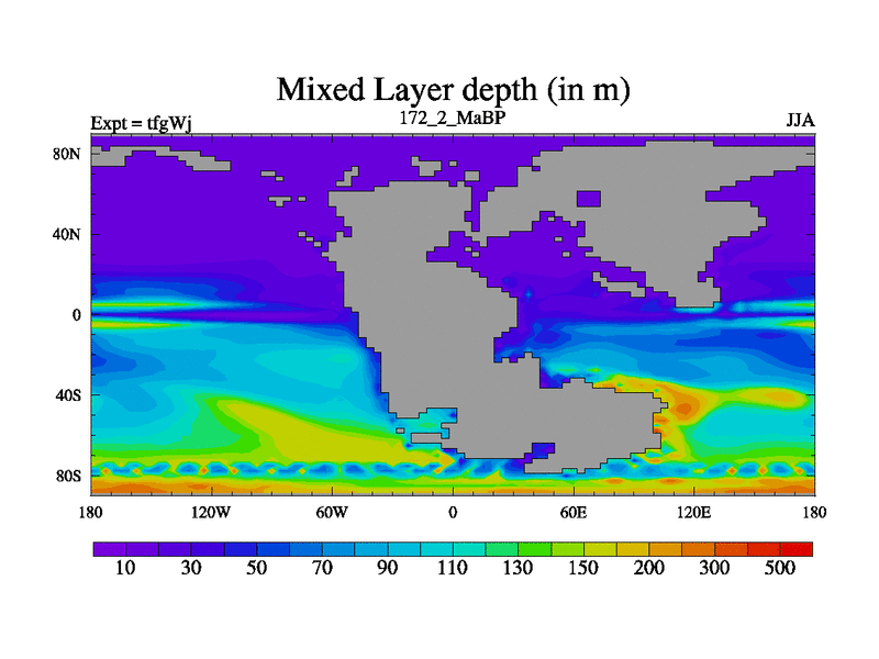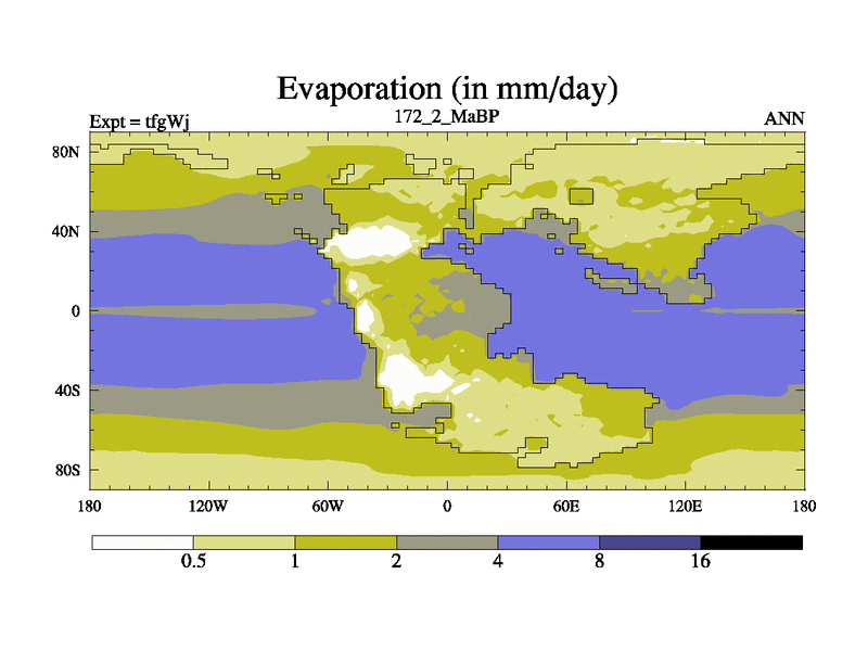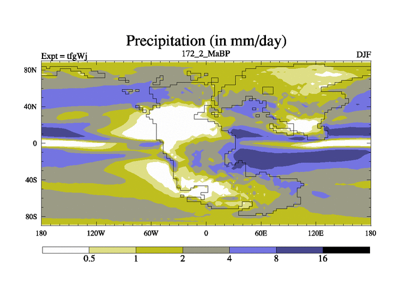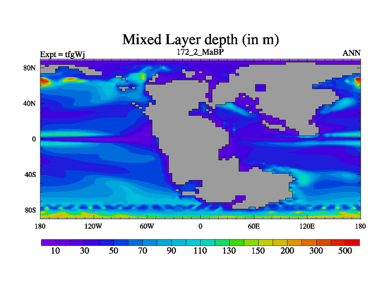 This is the 172.2 Ma simulation using the Scotese palaeogeographies and revised CCN etc. This version has islands included. Started from end of teyEj.