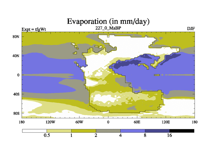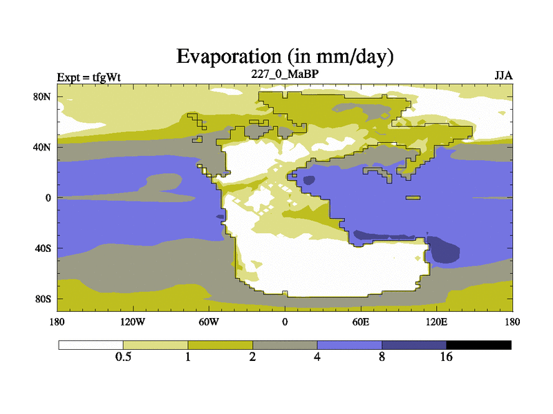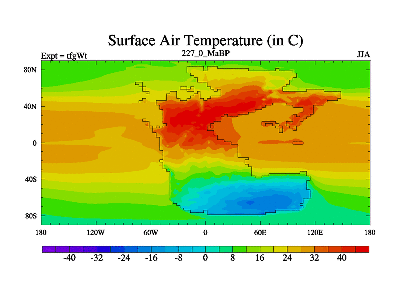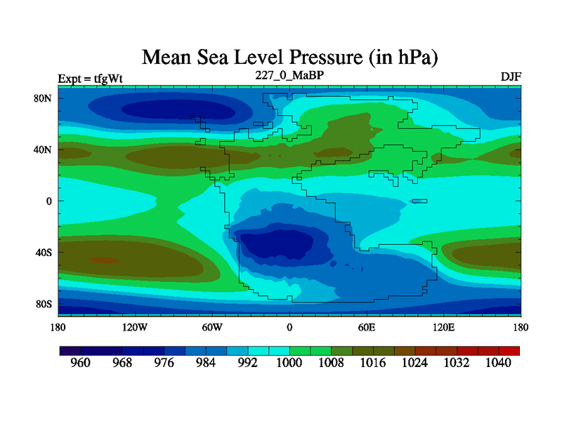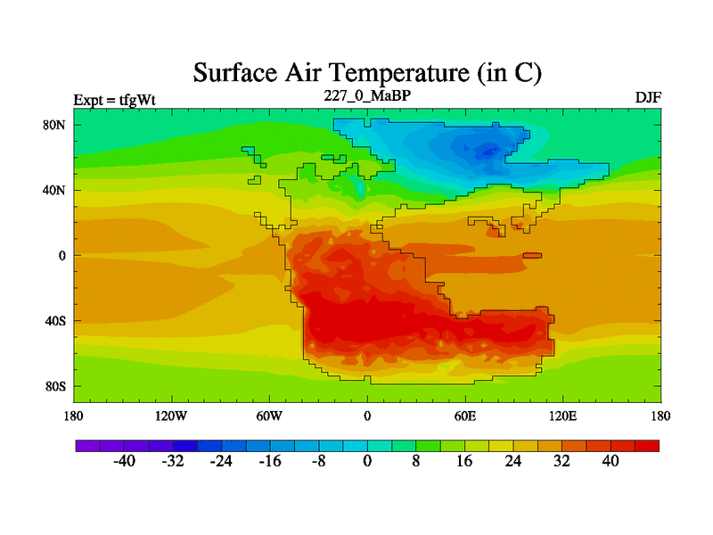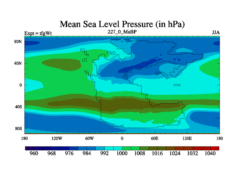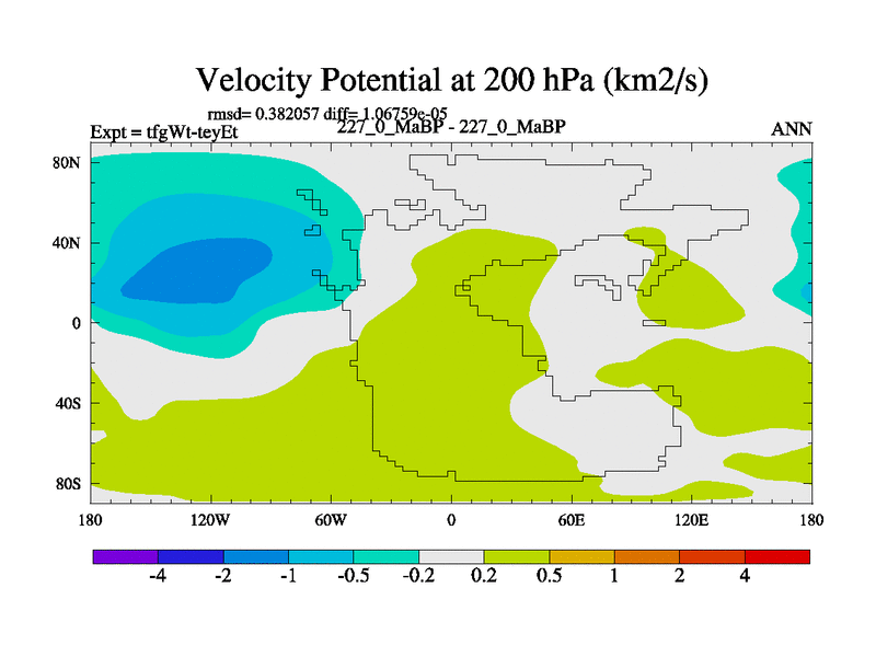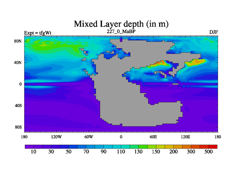 This is the 227.0 Ma simulation using the Scotese palaeogeographies and revised CCN etc. This version has islands included. Started from end of teyEt.