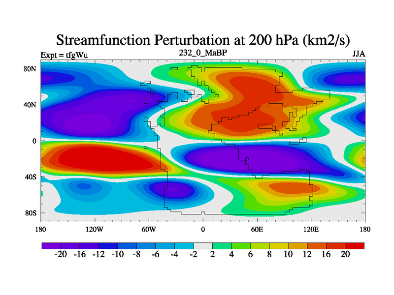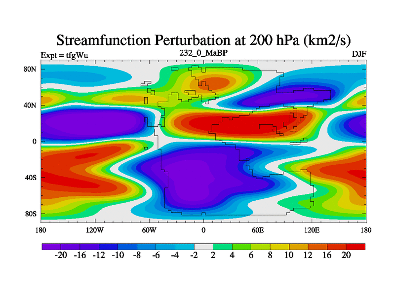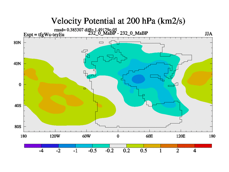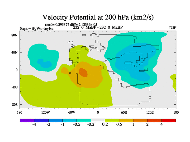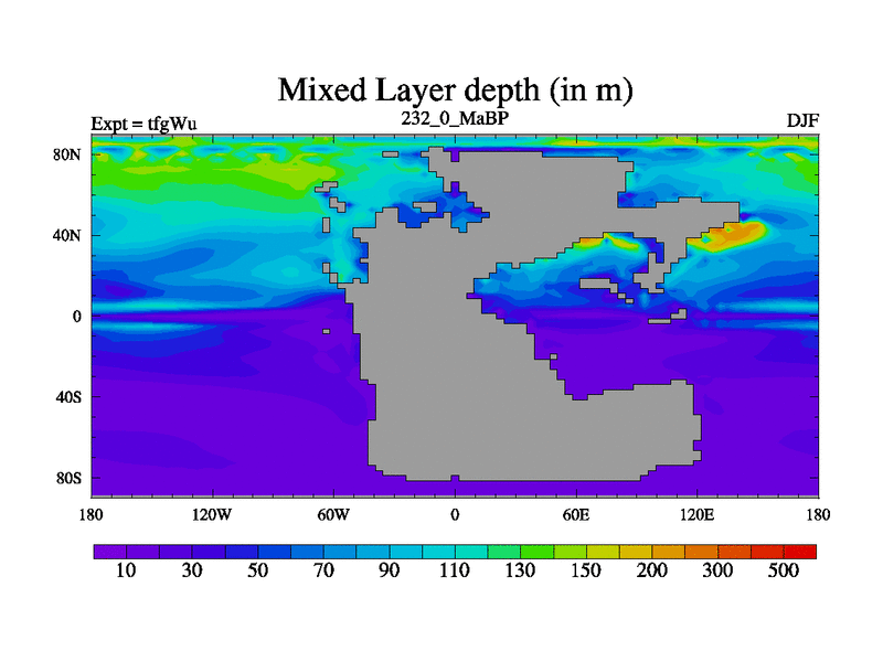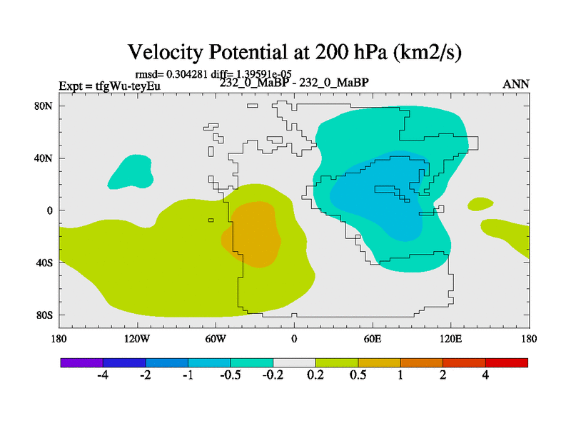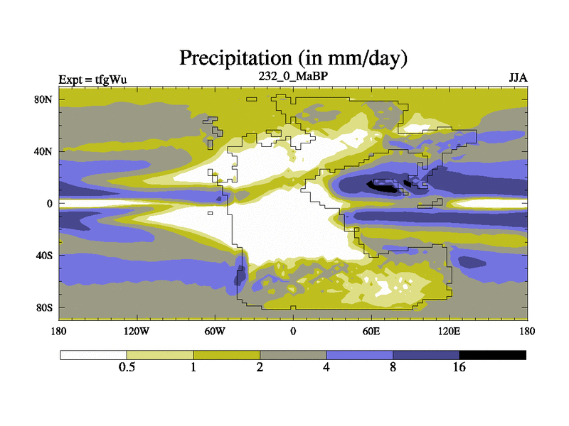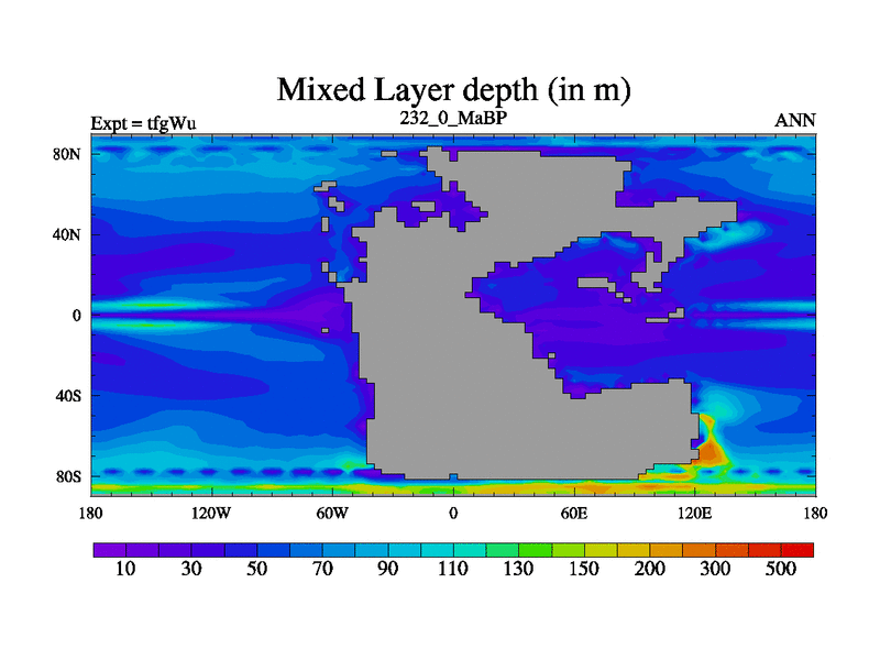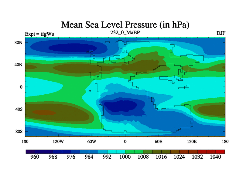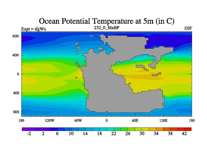 This is the 232.0 Ma simulation using the Scotese palaeogeographies and revised CCN etc. This version has islands included. Started from end of teyEu.