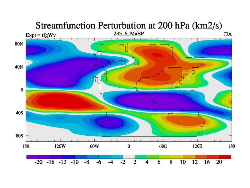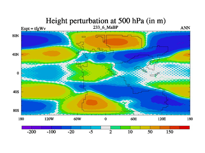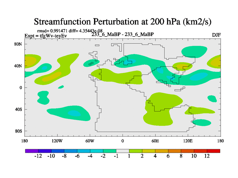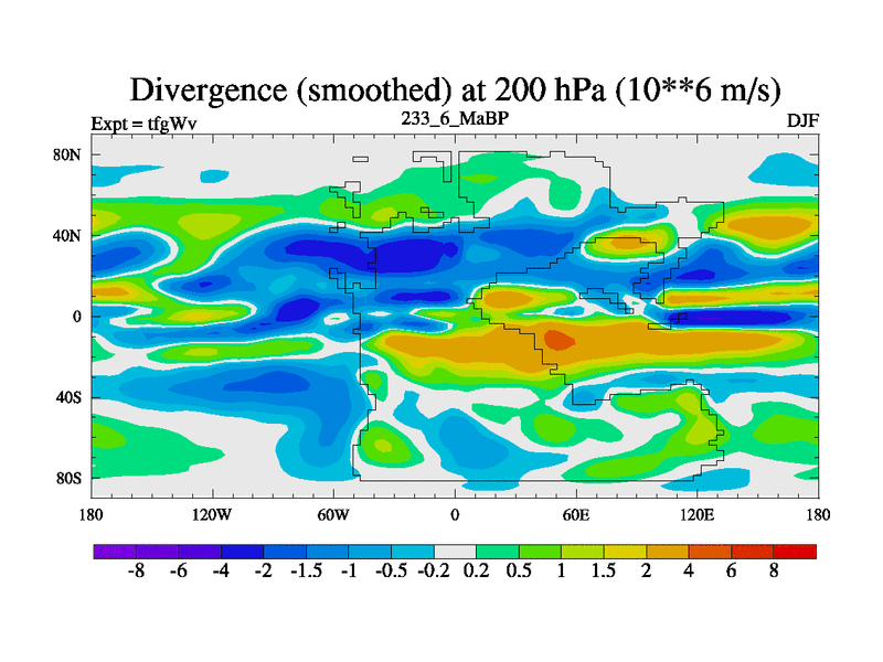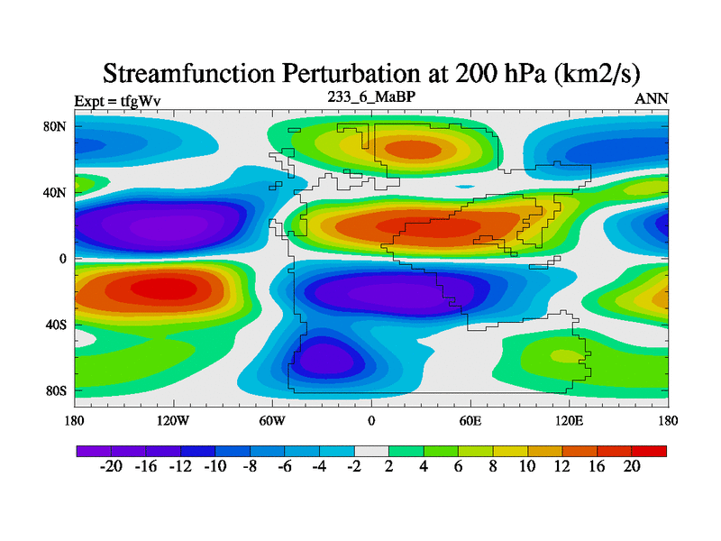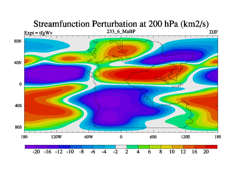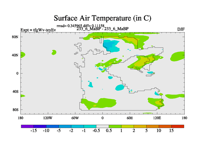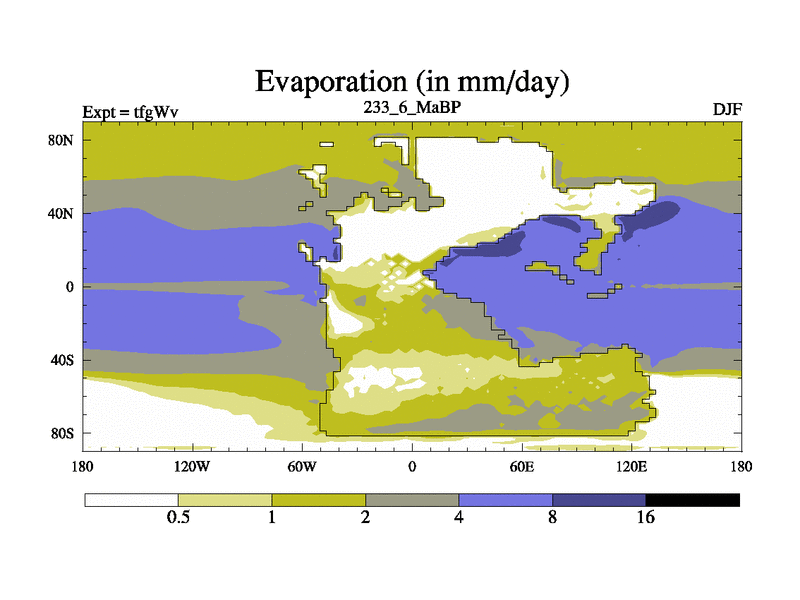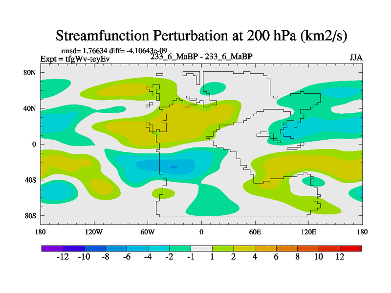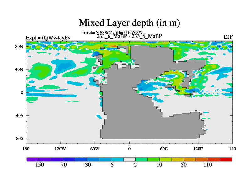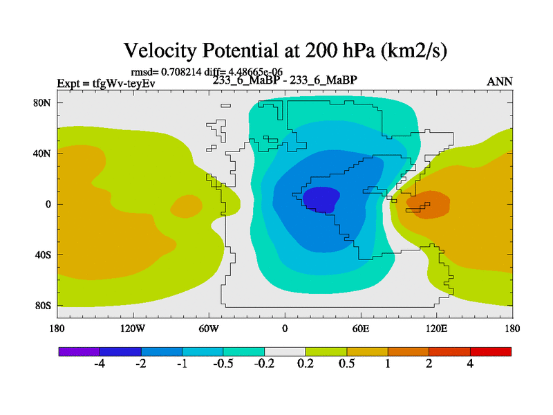 This is the 233.6 Ma simulation using the Scotese palaeogeographies and revised CCN etc. This version has islands included. Started from end of teyEv.