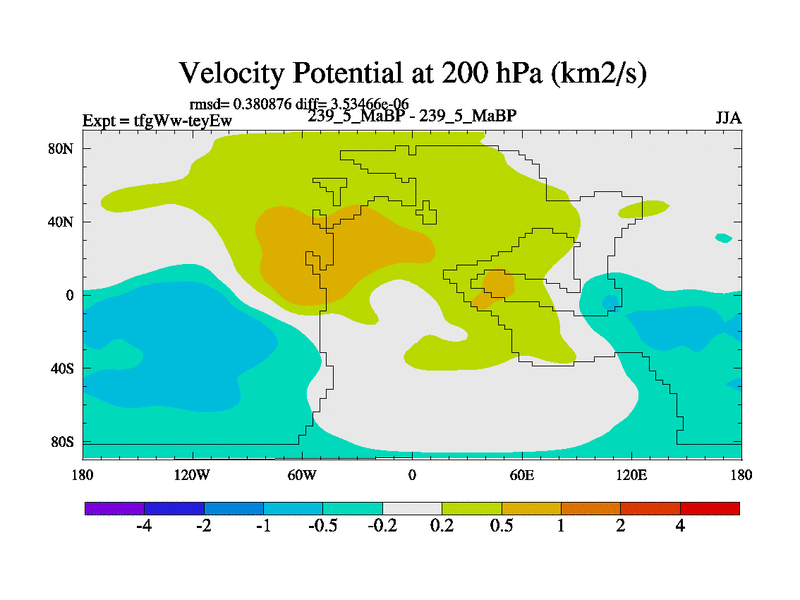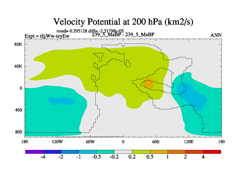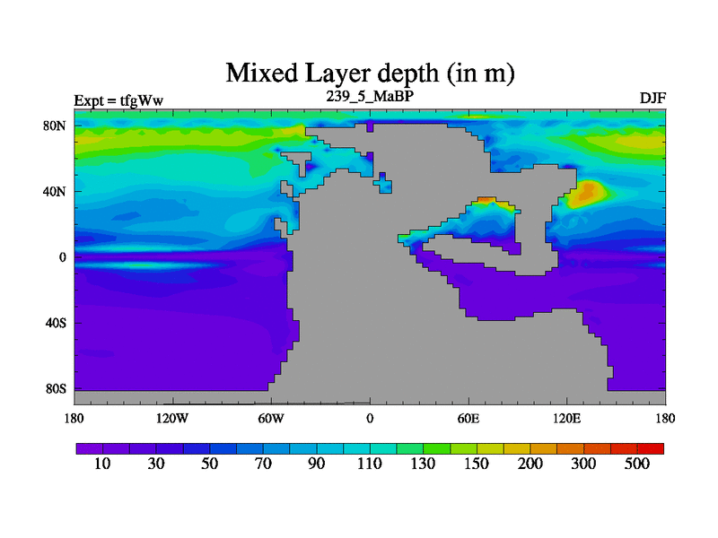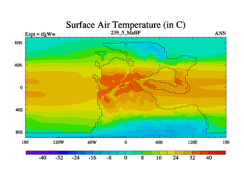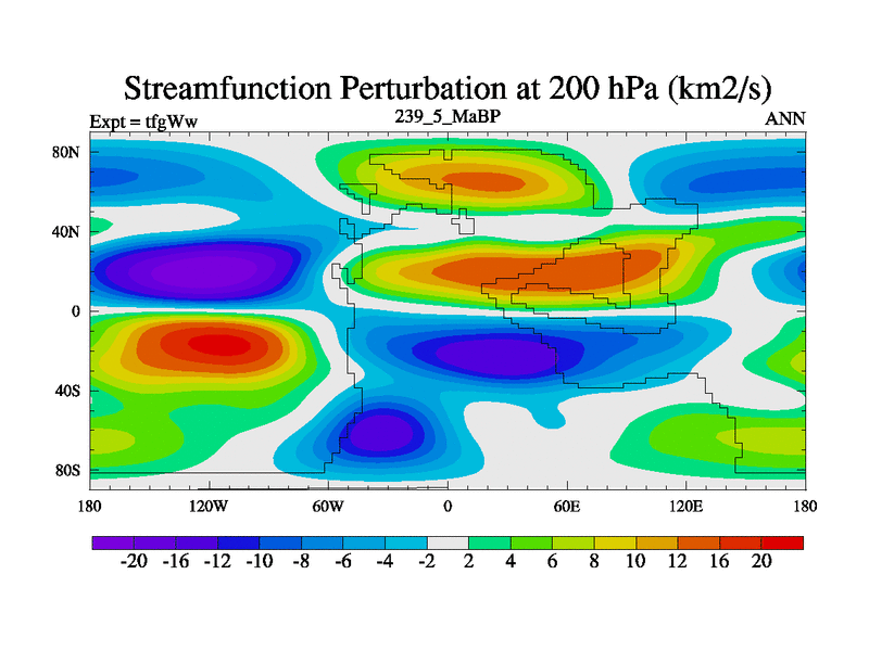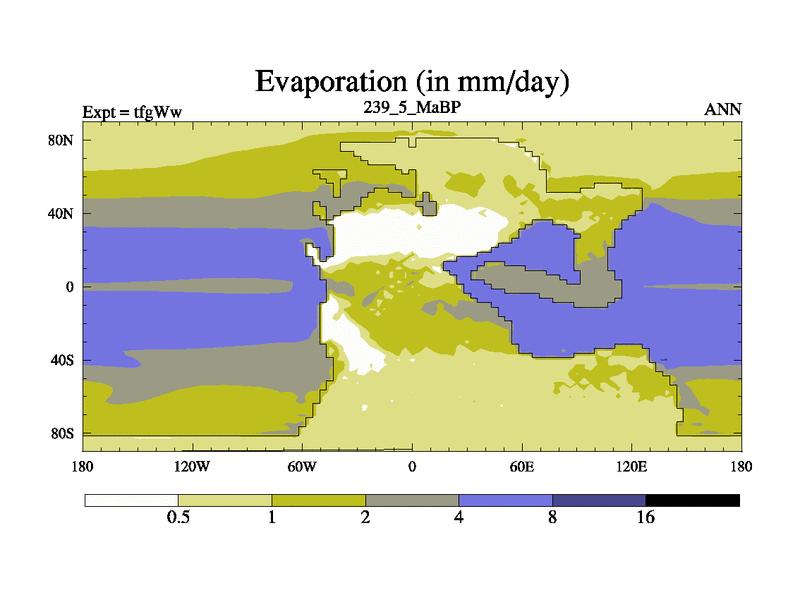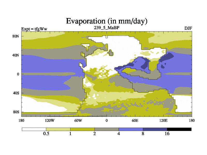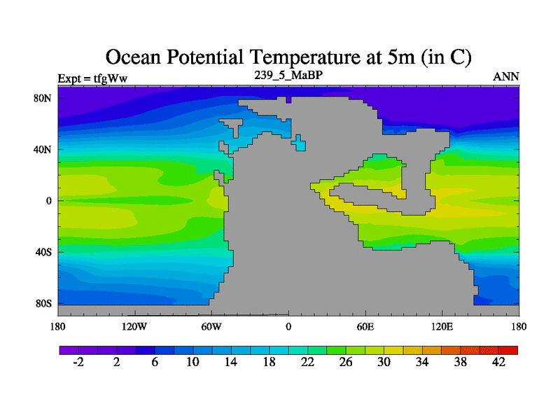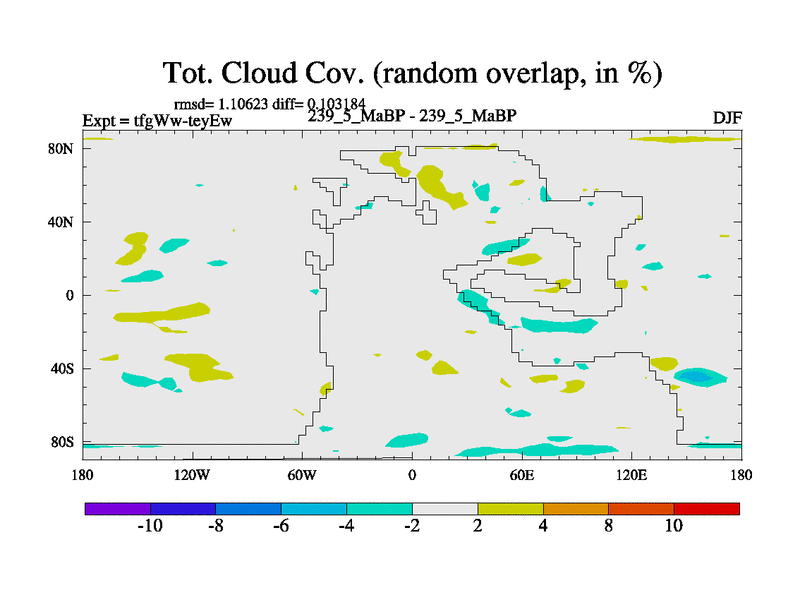 This is the 239.5 Ma simulation using the Scotese palaeogeographies and revised CCN etc. This version has islands included. Started from end of teyEw.