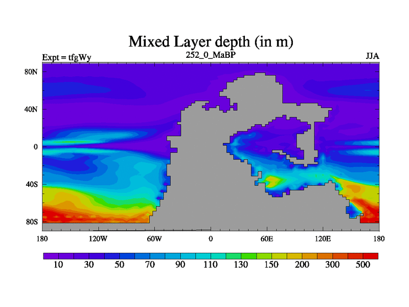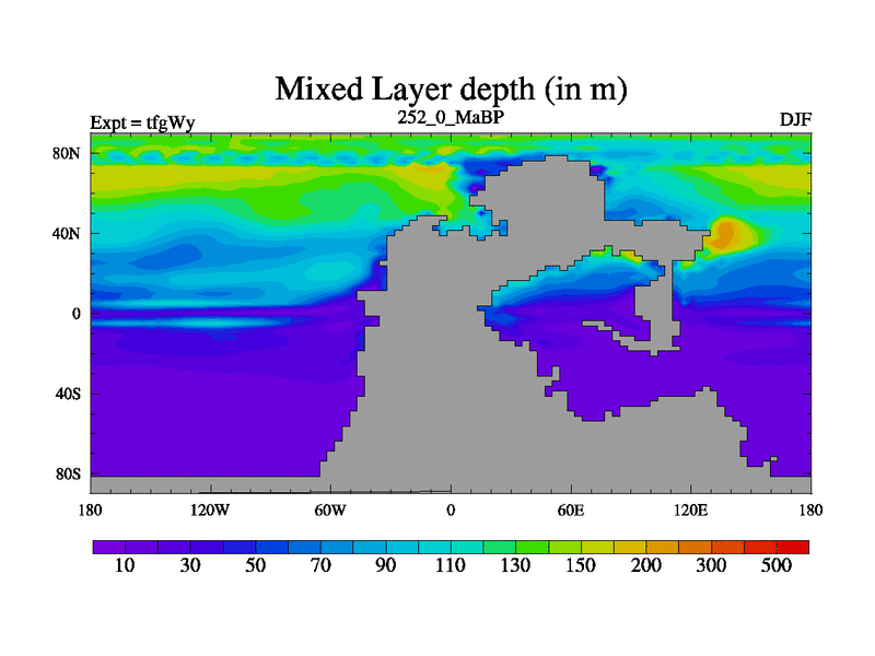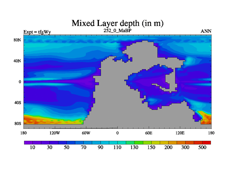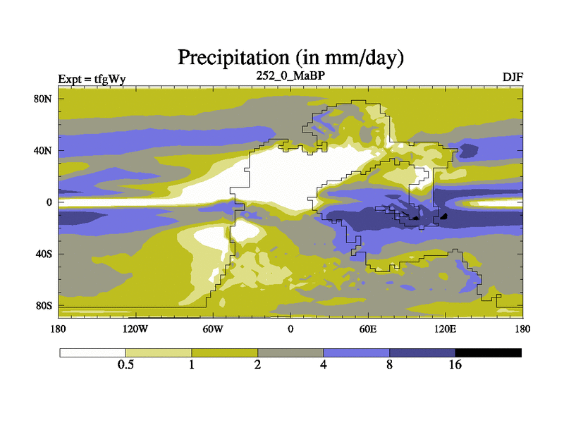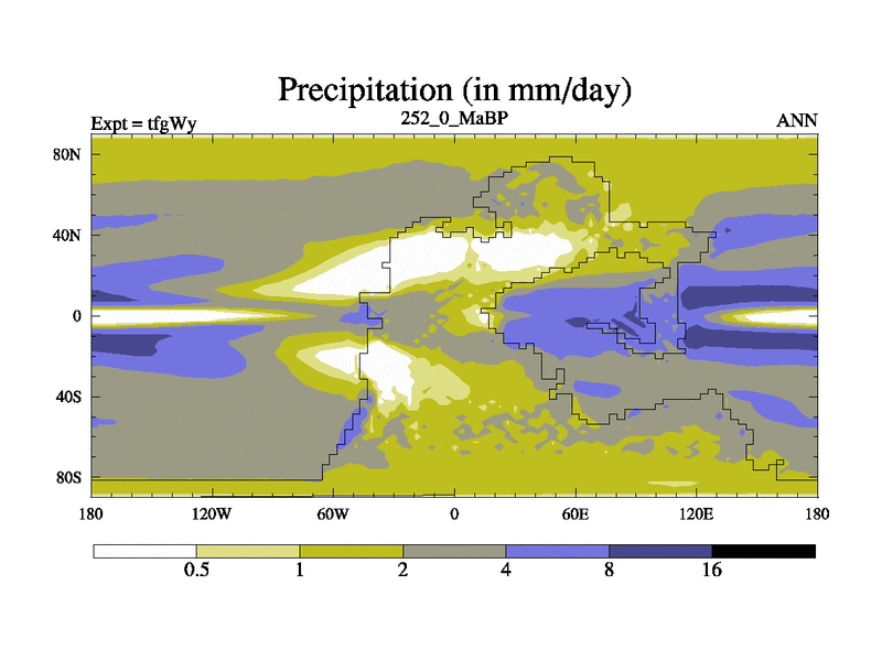 This is the 252.0 Ma simulation using the Scotese palaeogeographies and revised CCN etc. This version has islands included. Started from end of teyEy.