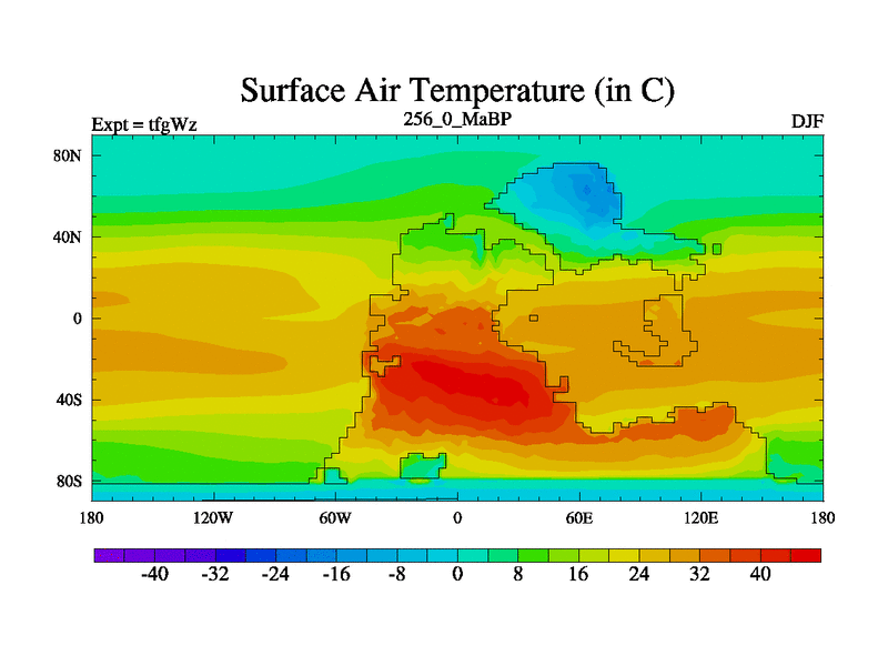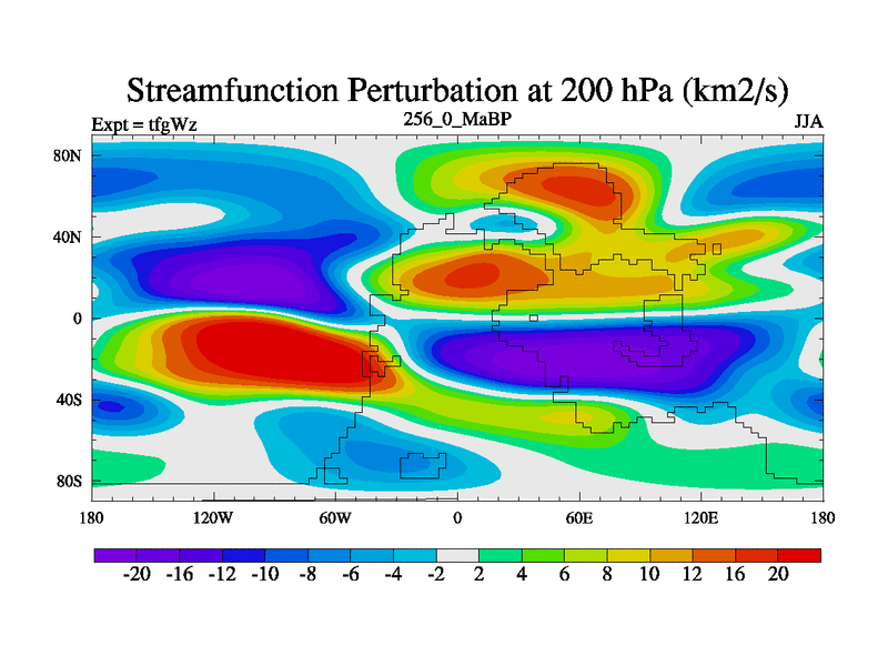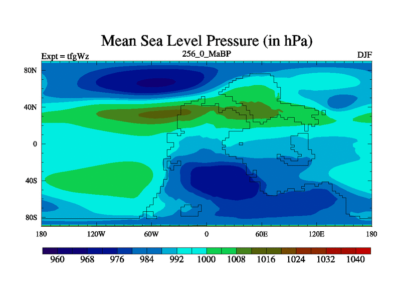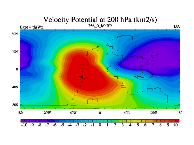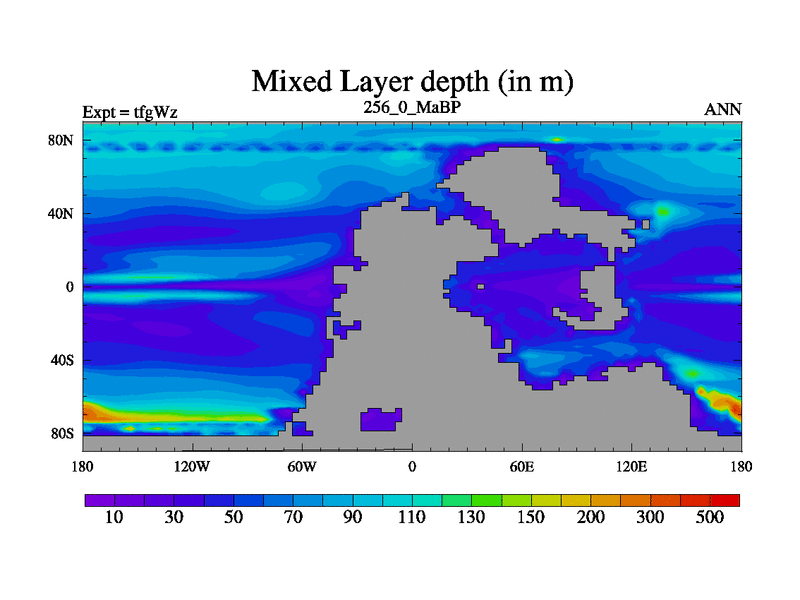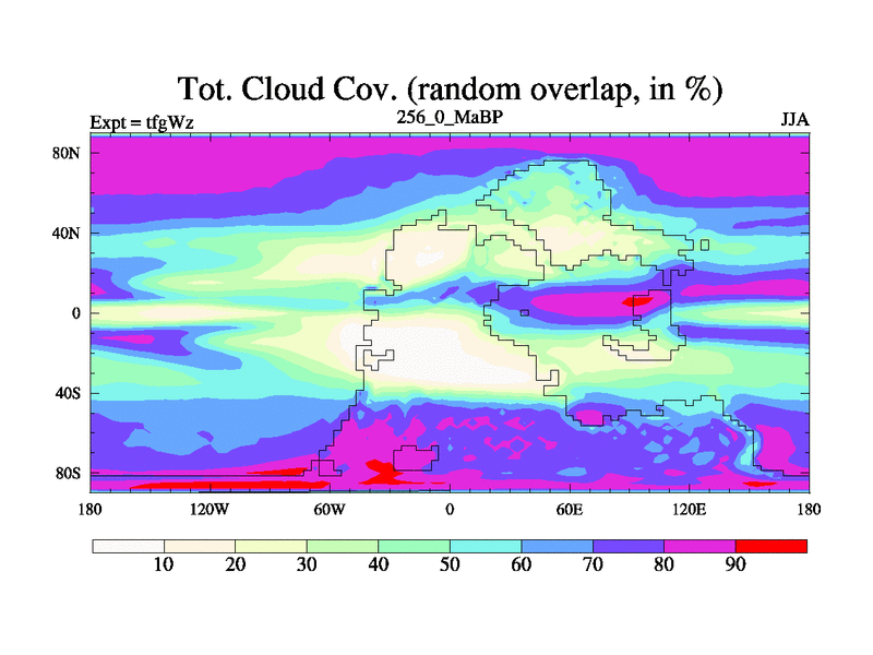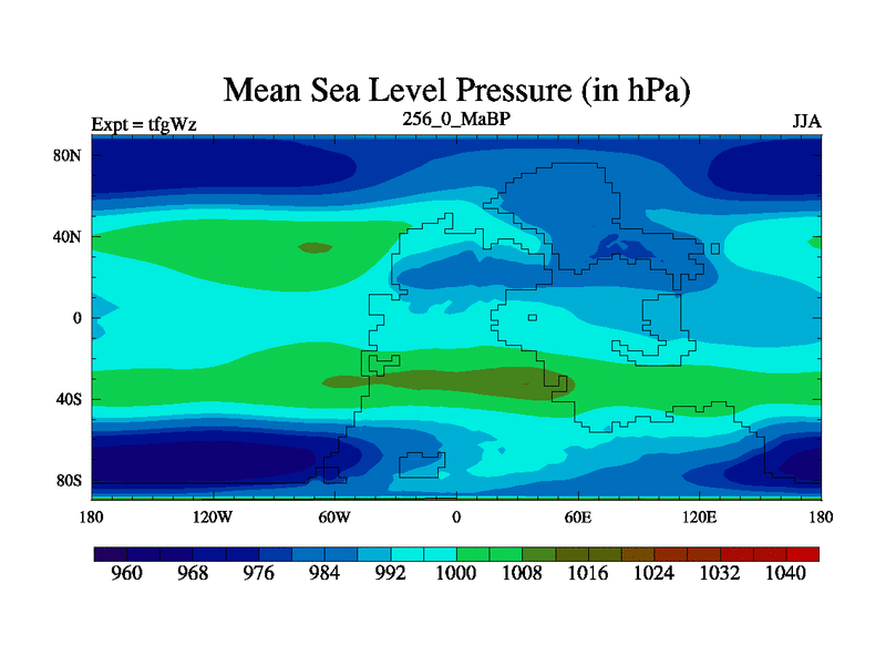 This is the 256.0 Ma simulation using the Scotese palaeogeographies and revised CCN etc. This version has islands included. Started from end of teyEz.