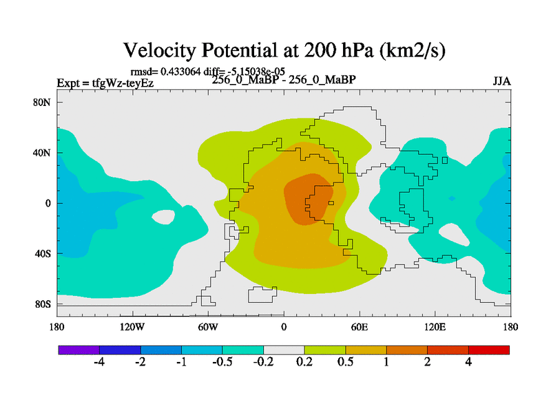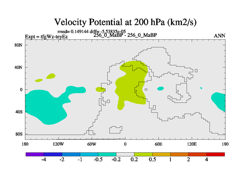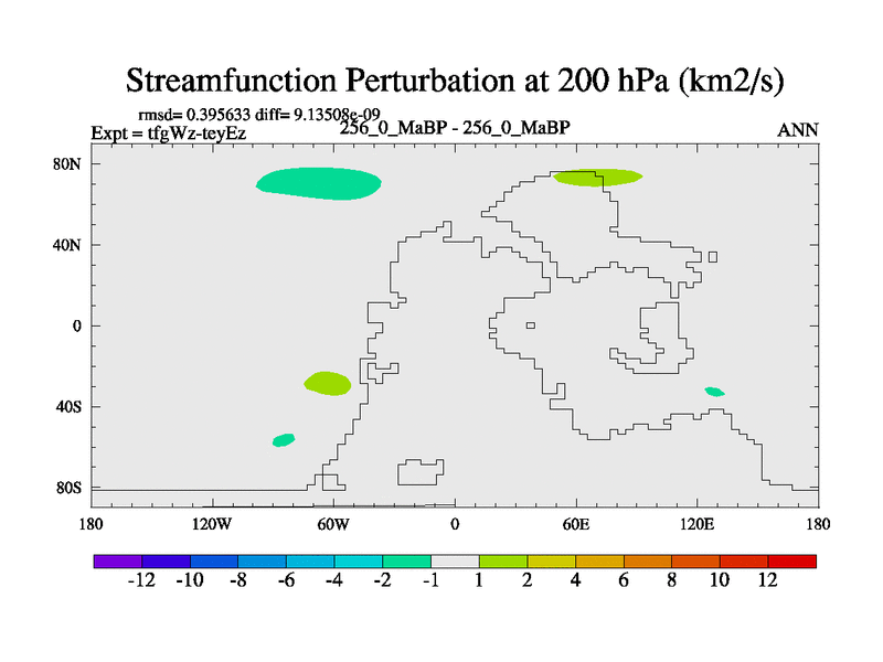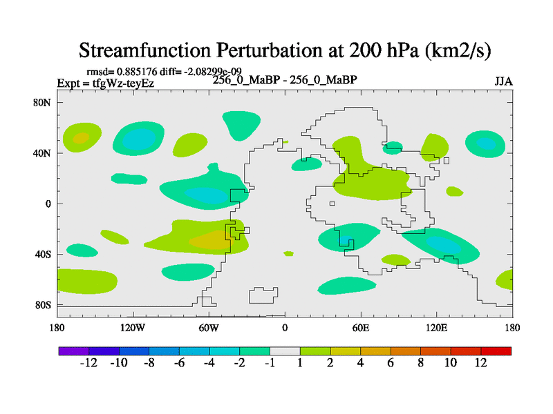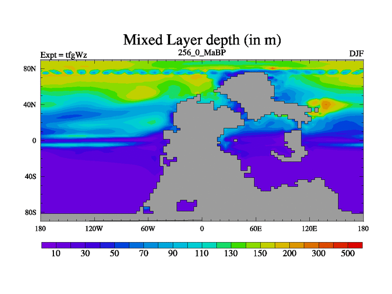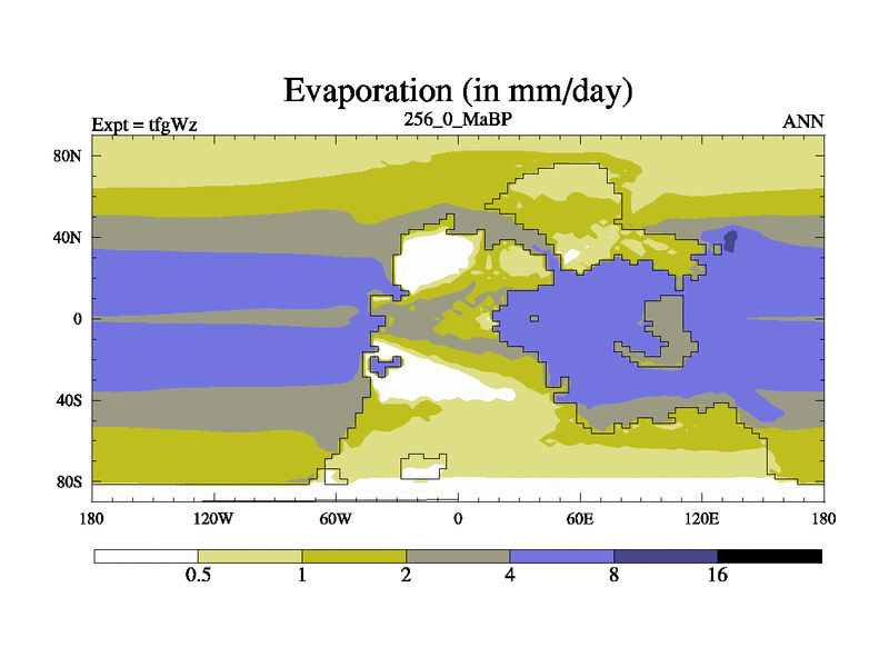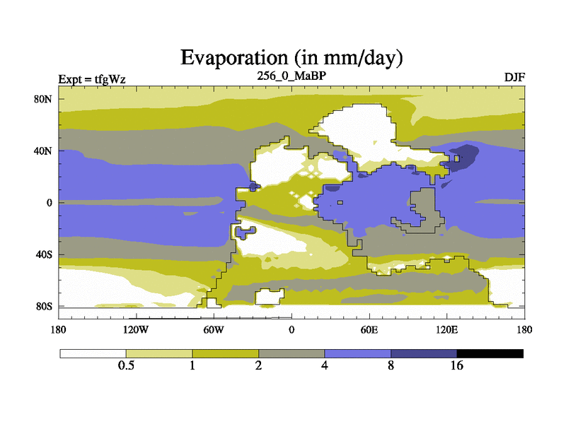 This is the 256.0 Ma simulation using the Scotese palaeogeographies and revised CCN etc. This version has islands included. Started from end of teyEz.