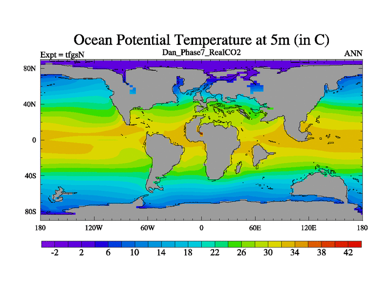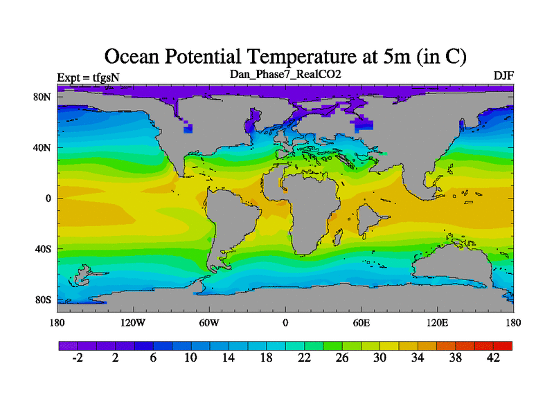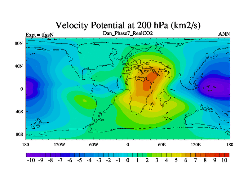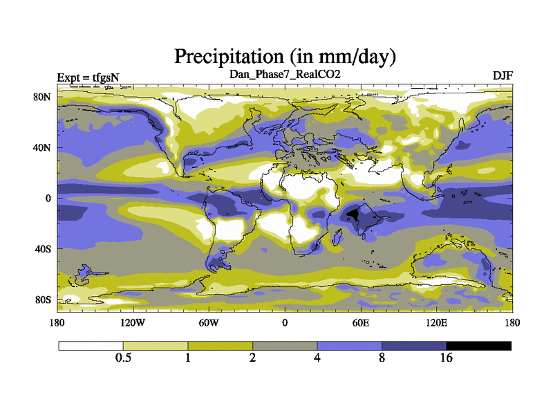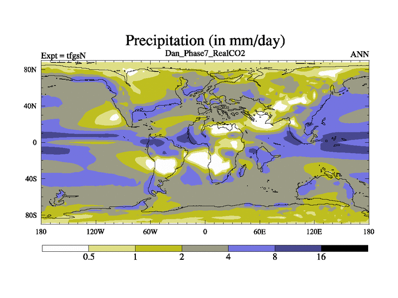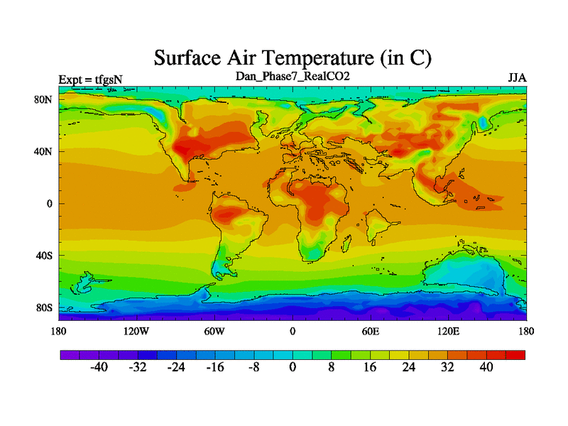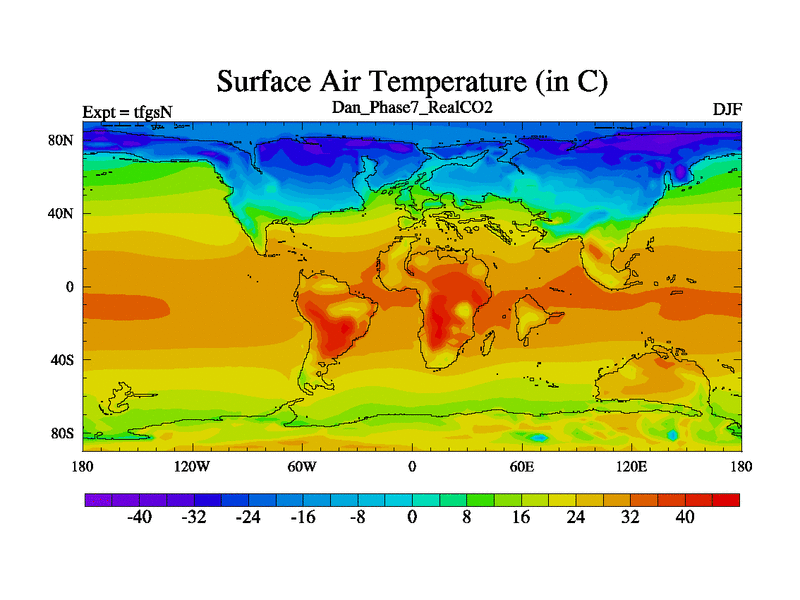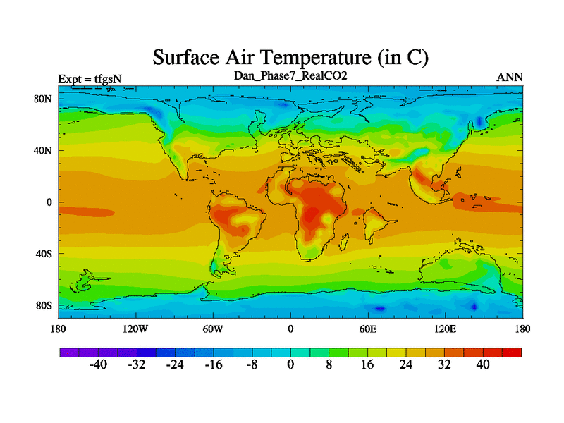 Danian simulation. 3000 years. 100 year mean. Phase 7 model. BETR modifications, 'REAL' CO2. New Phys (CCN/desert/diff).