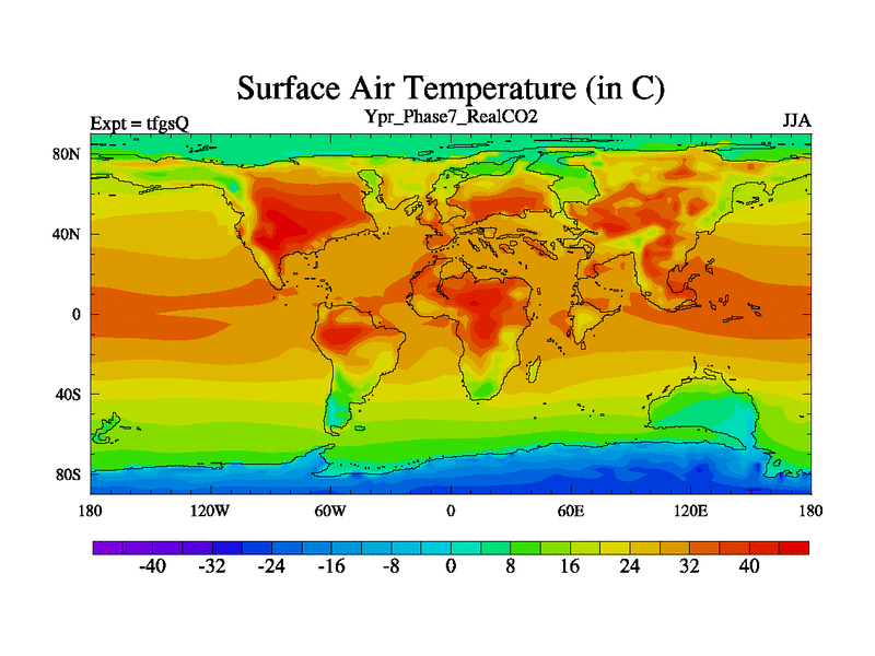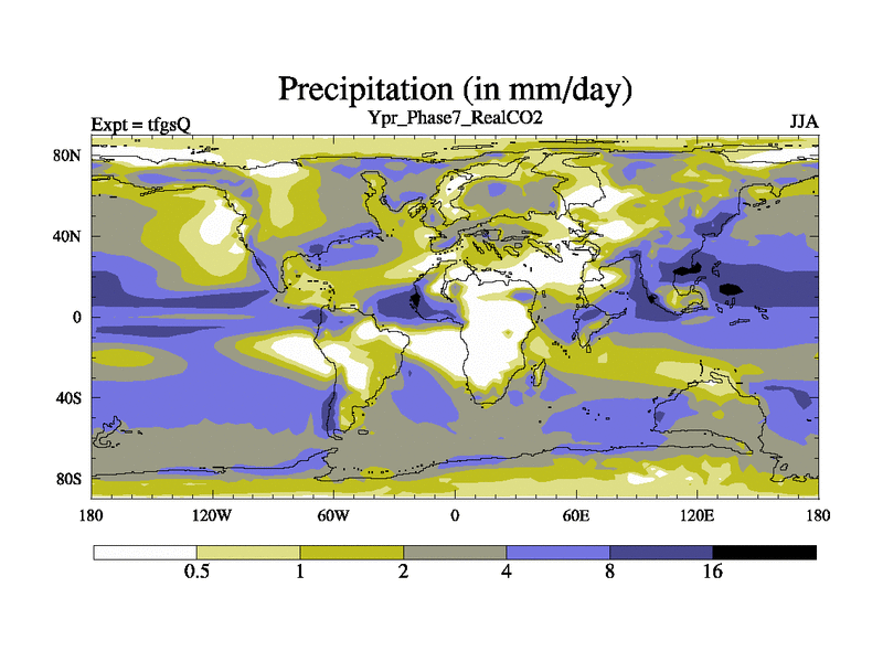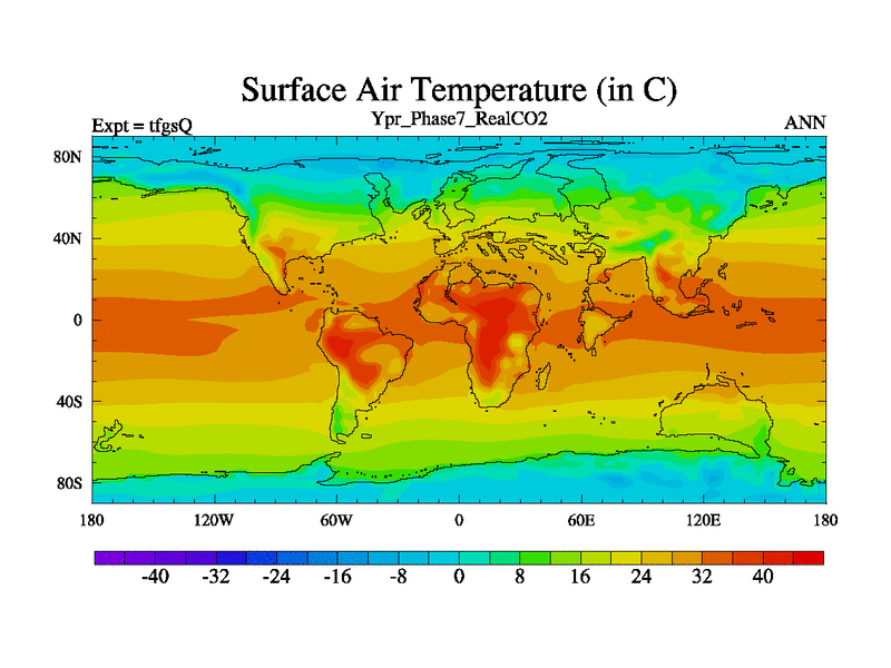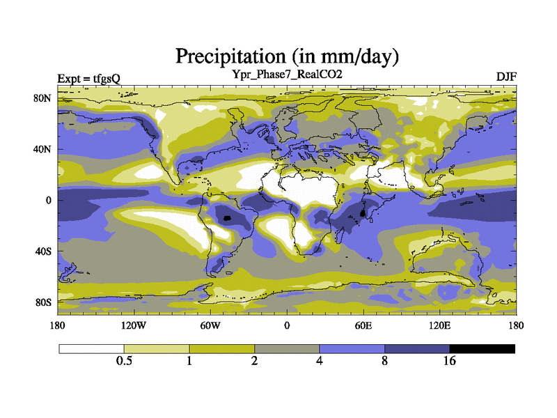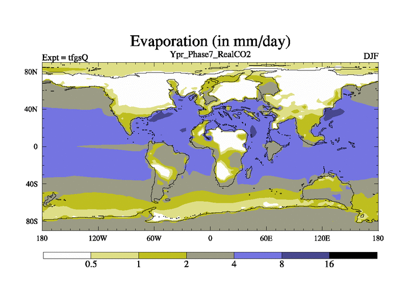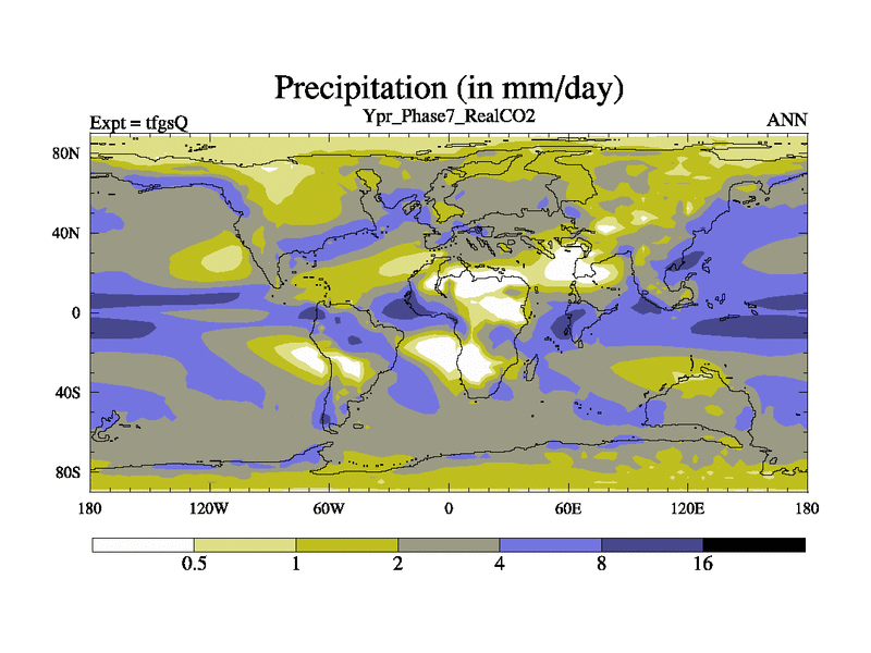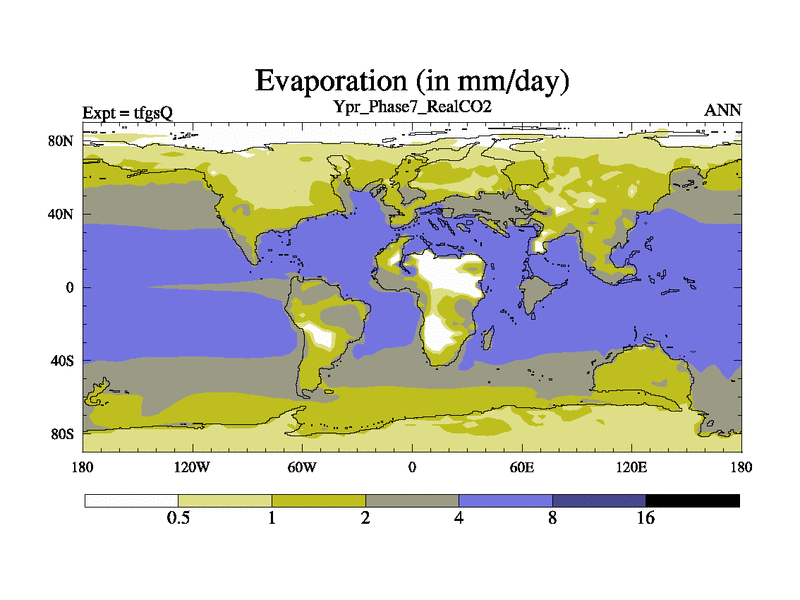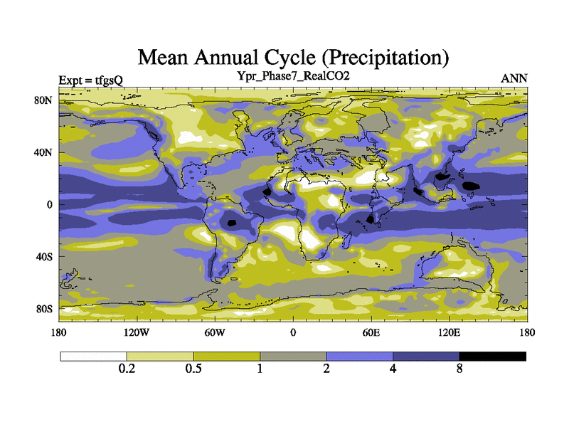 Ypresian simulation. 6000 years. 100 year mean. Phase 7 model. BETR modifications, 'Real' CO2. New Phys (CCN/desert/diff).