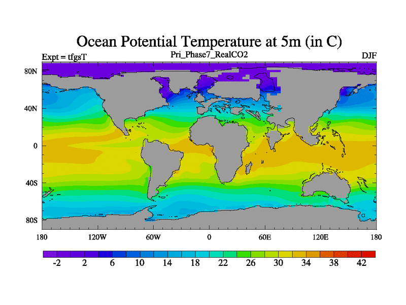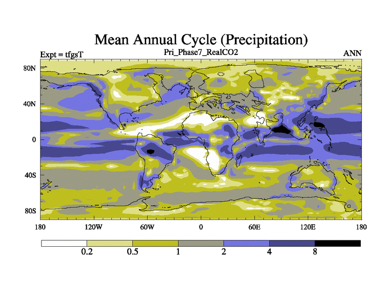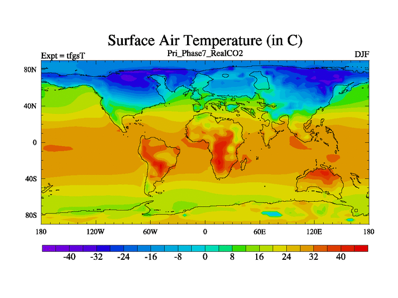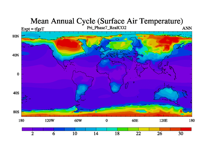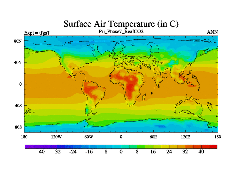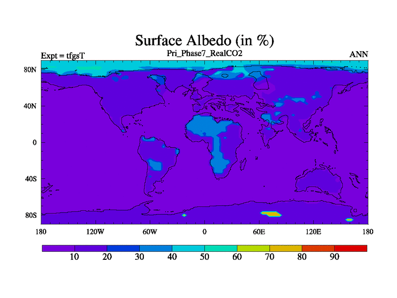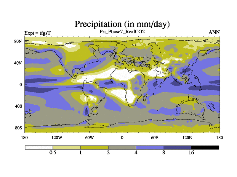 Priabonian simulation. 3000 years. 100 year mean. Phase 7 model. BETR modifications, 'Real' CO2. New Phys (CCN/desert/diff).