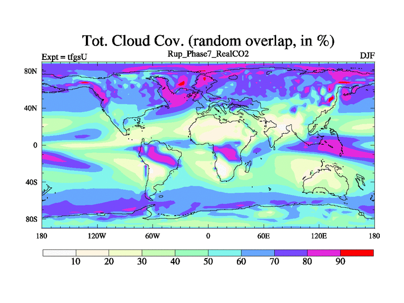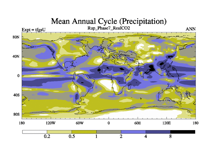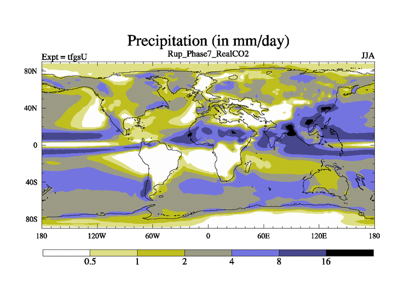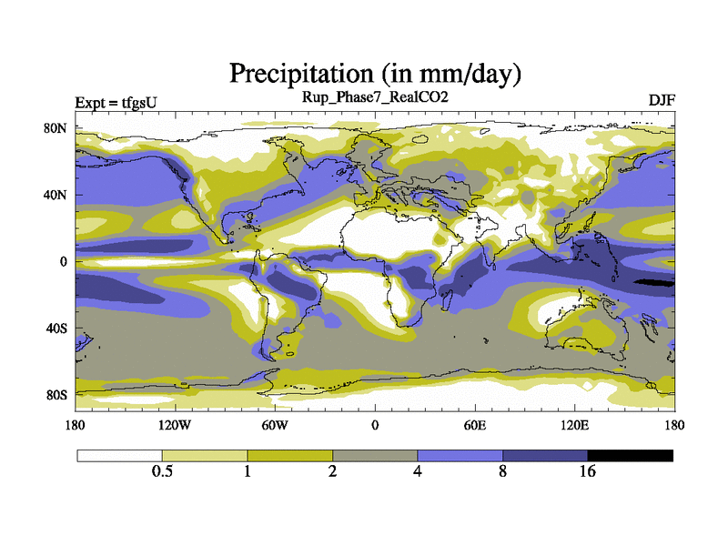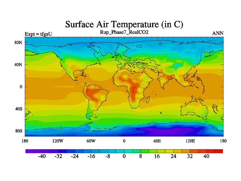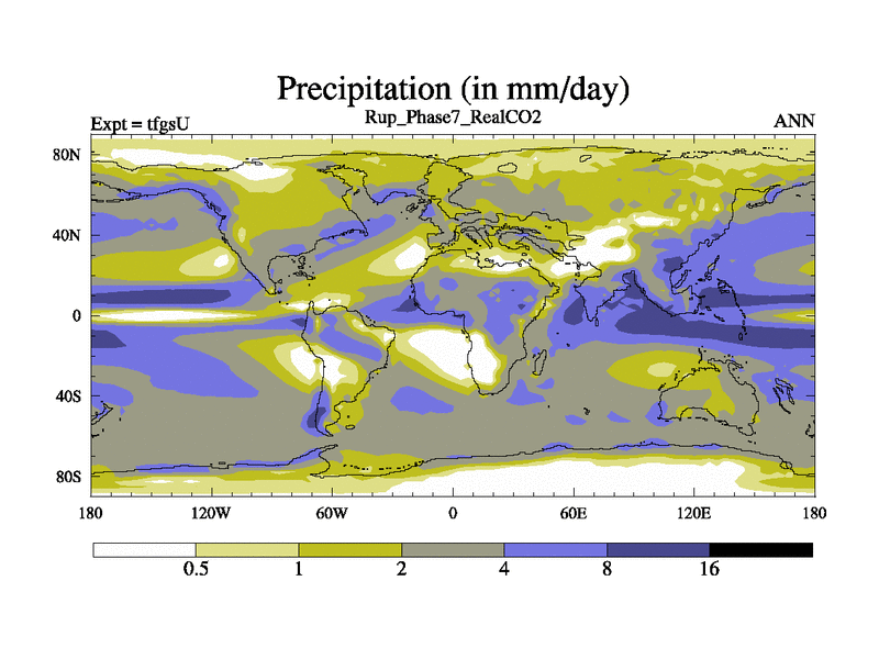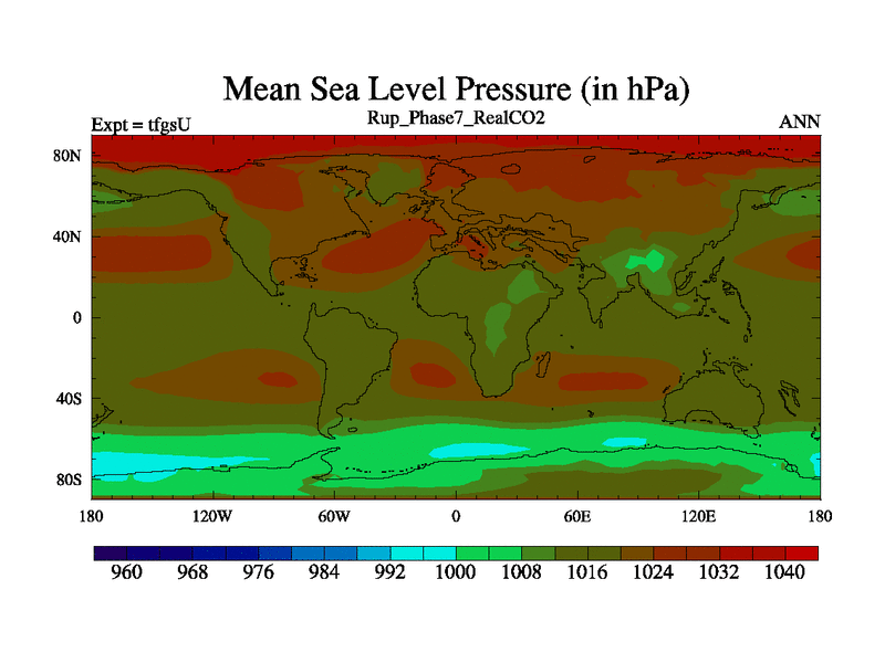 Rupelian simulation. 3000 years. 100 year mean. Phase 7 model. BETR modifications, 'Real' Co2. New Phys (CCN/desert/diff).