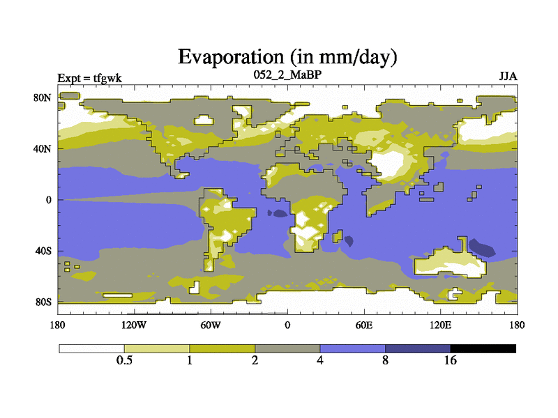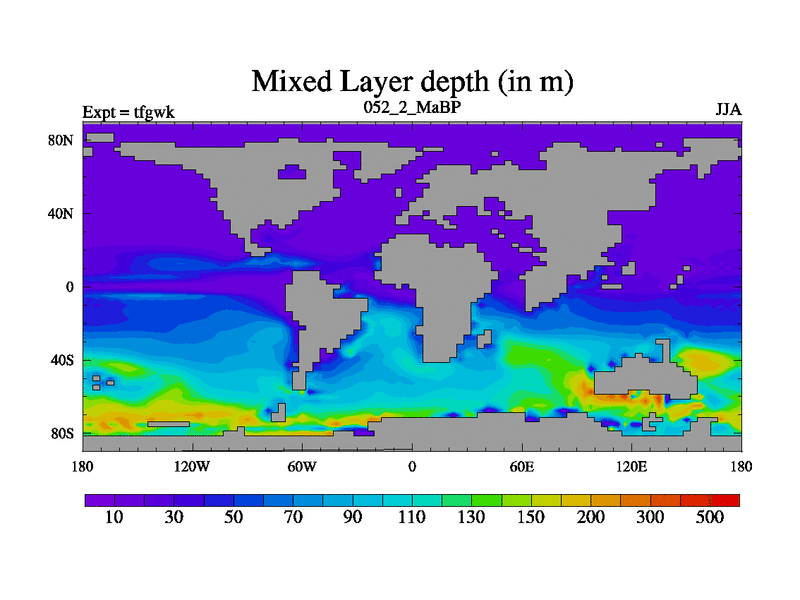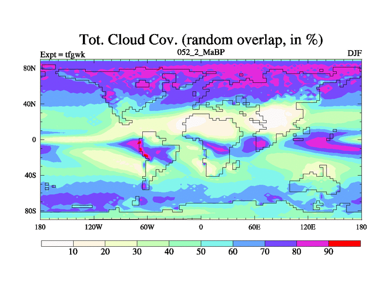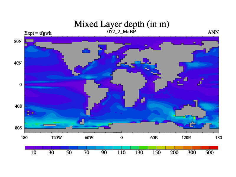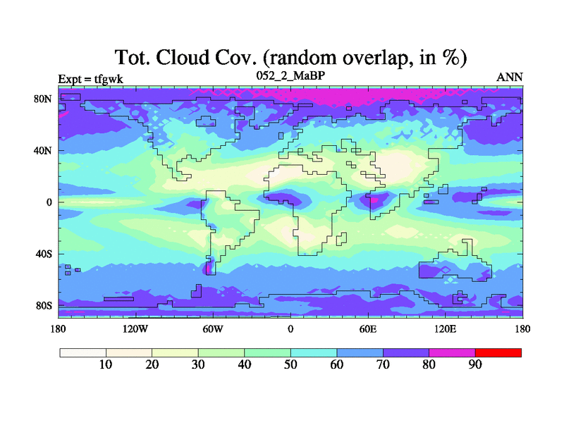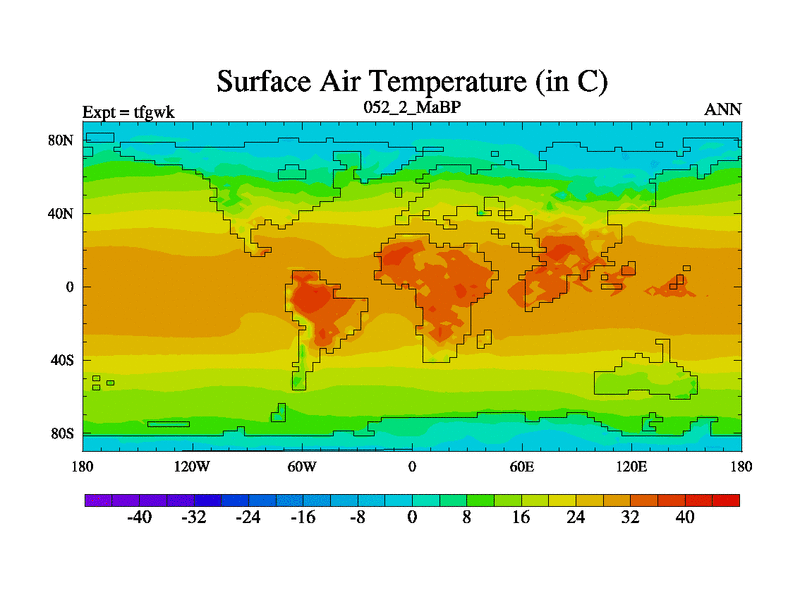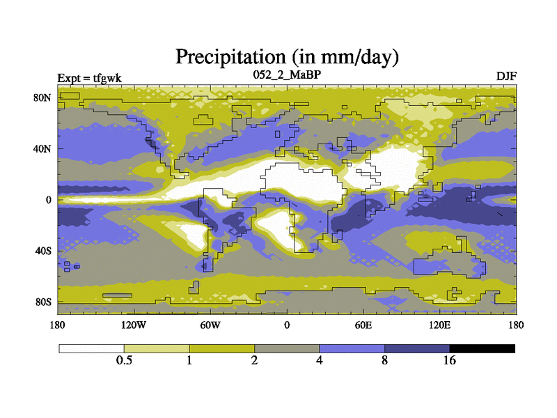 This is the 52.2 Ma simulation using the Scotese palaeogeographies and revised CCN etc. This version has islands included. Started from end of teyek.