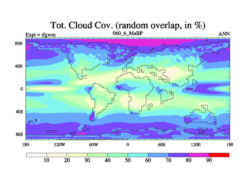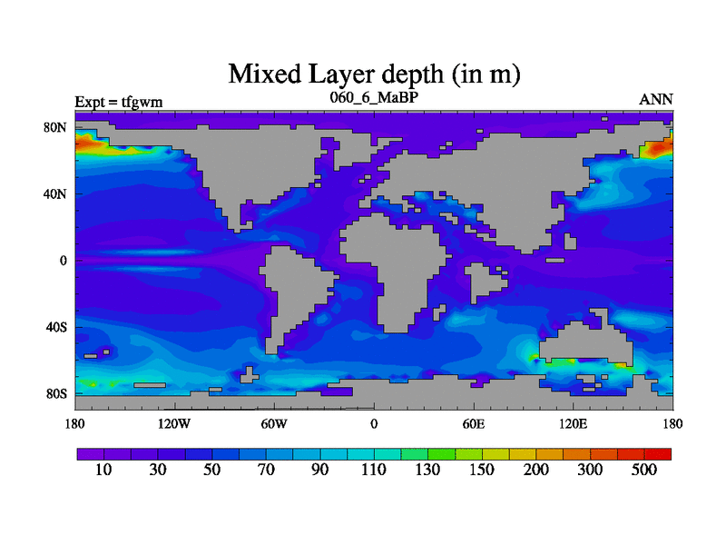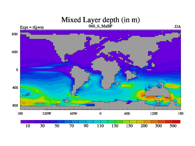 This is the 60.6 Ma simulation using the Scotese palaeogeographies and revised CCN etc. This version has islands included. Started from end of teyem.
