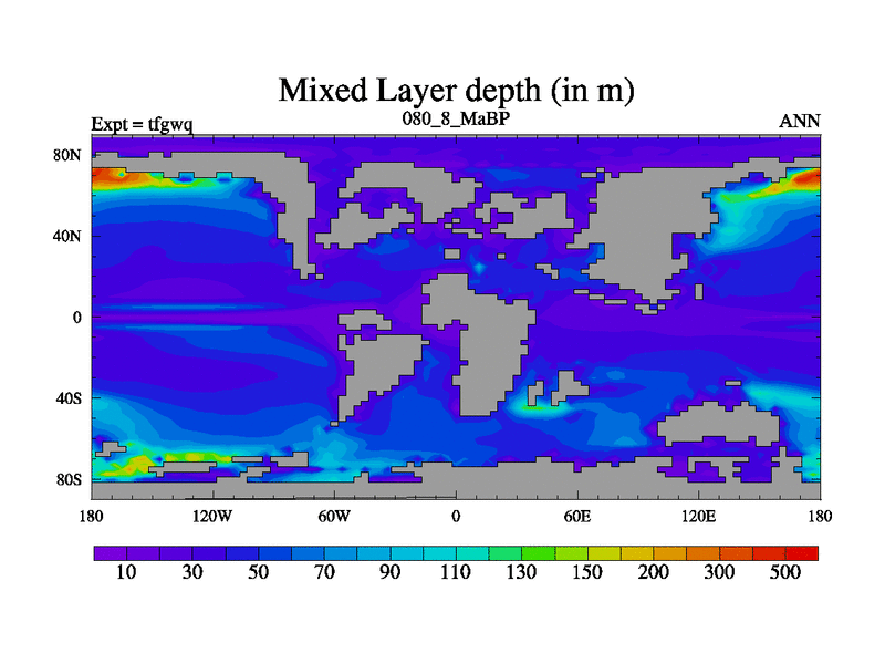 This is the 80.8 Ma simulation using the Scotese palaeogeographies and revised CCN etc. This version has islands included. Started from end of teyeq.