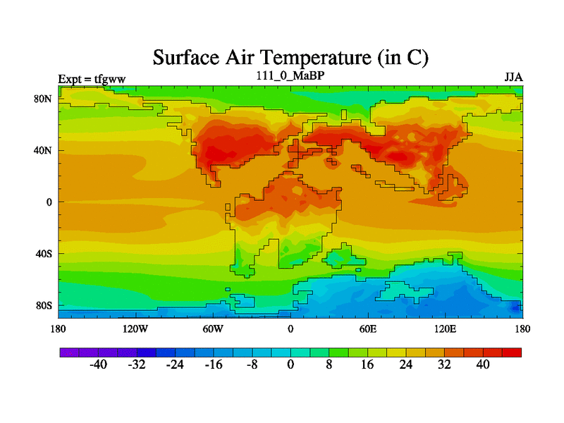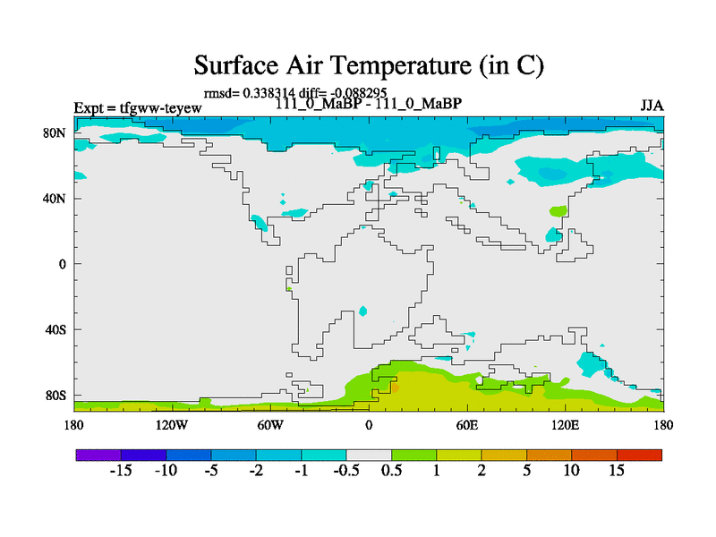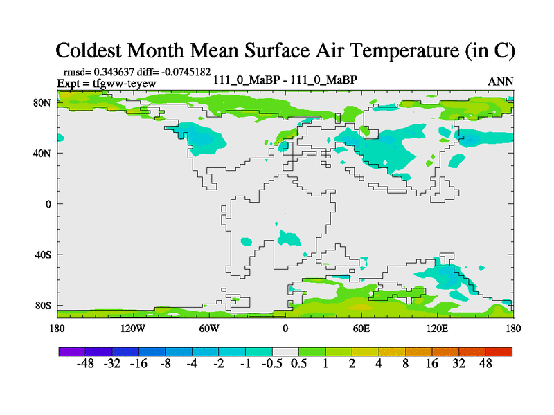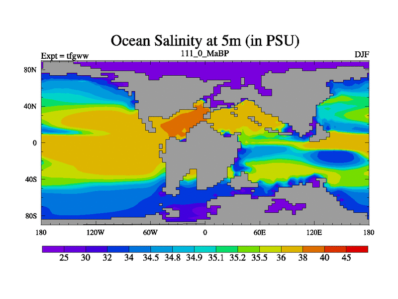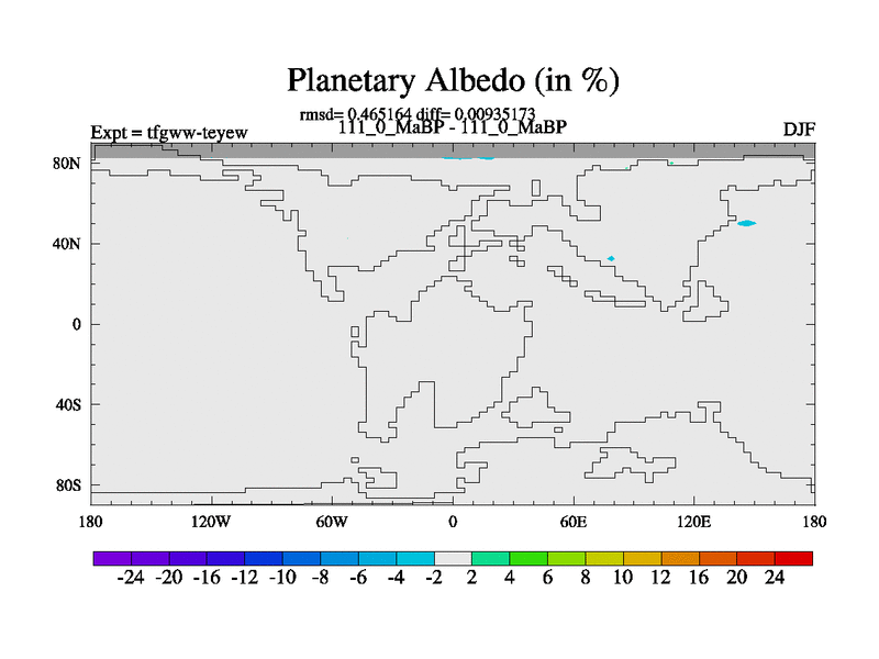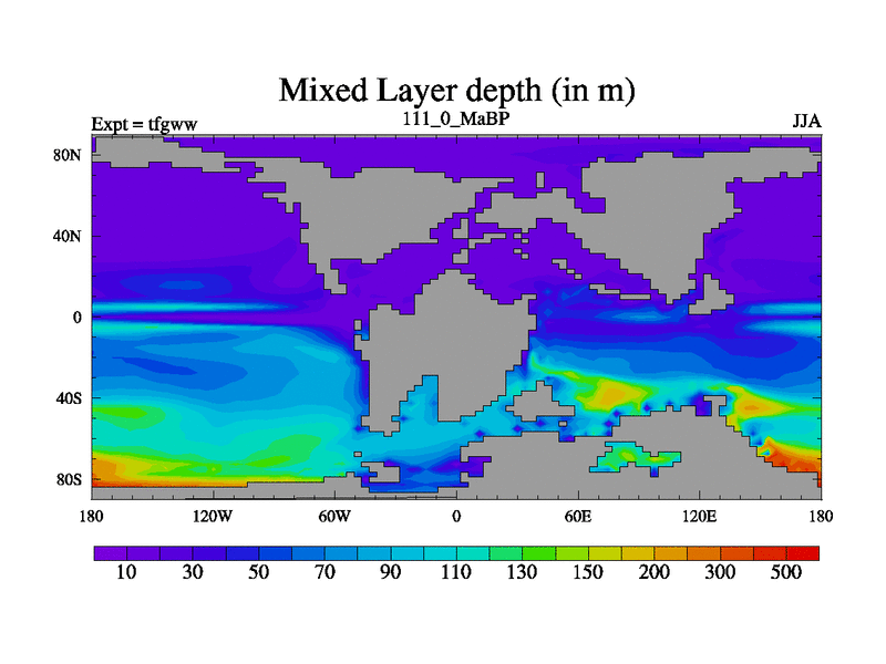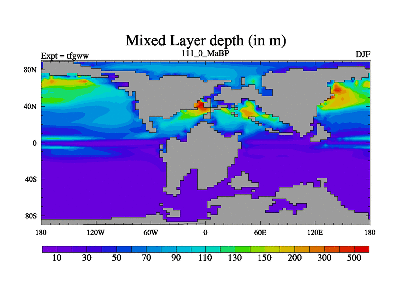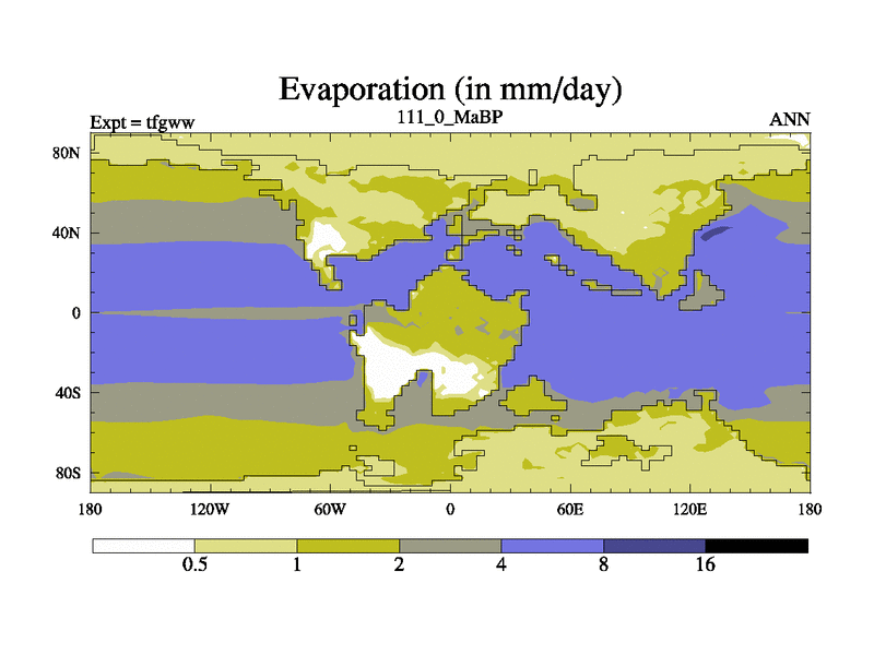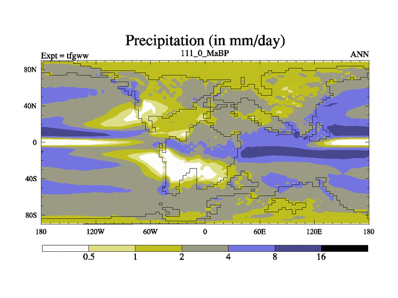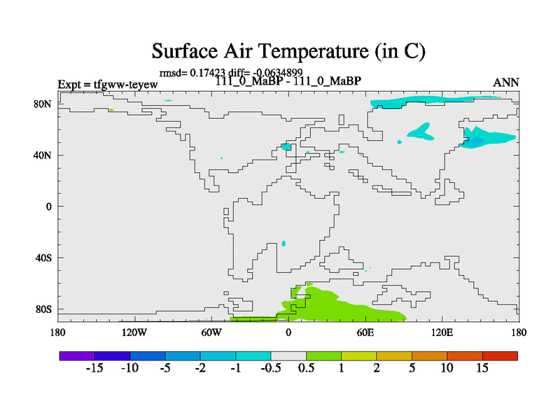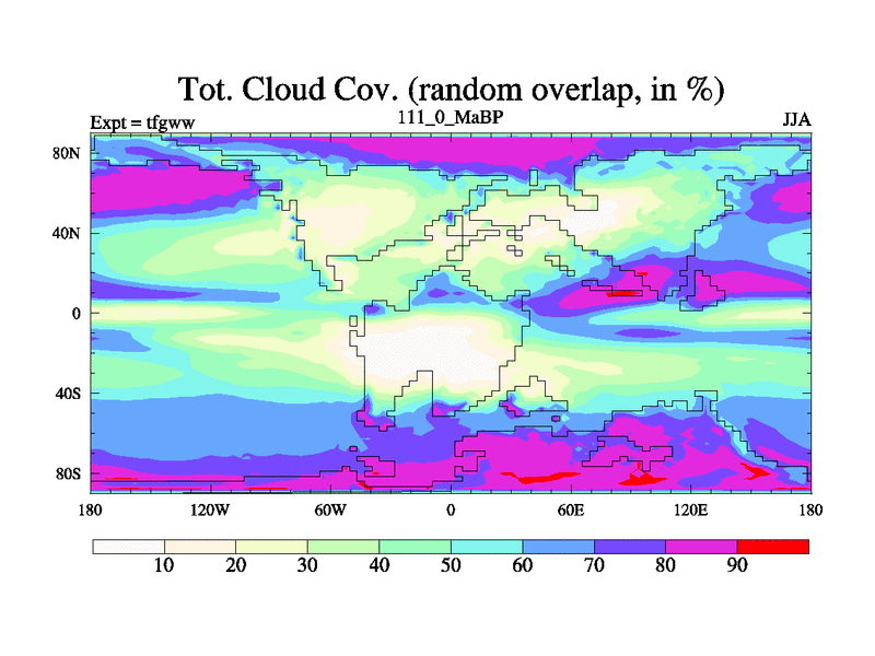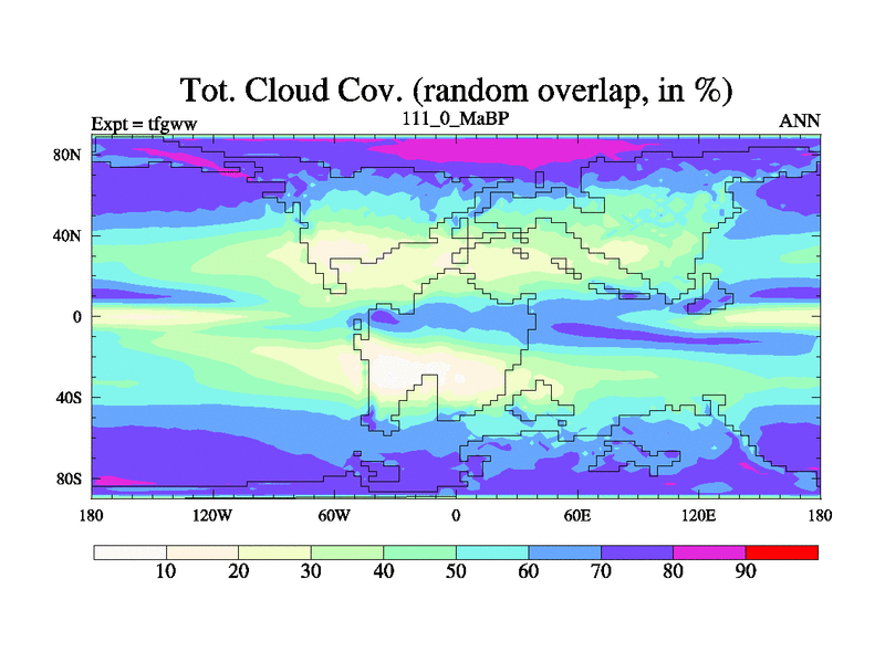 This is the 111.0 Ma simulation using the Scotese palaeogeographies and revised CCN etc. This version has islands included. Started from end of teyew.