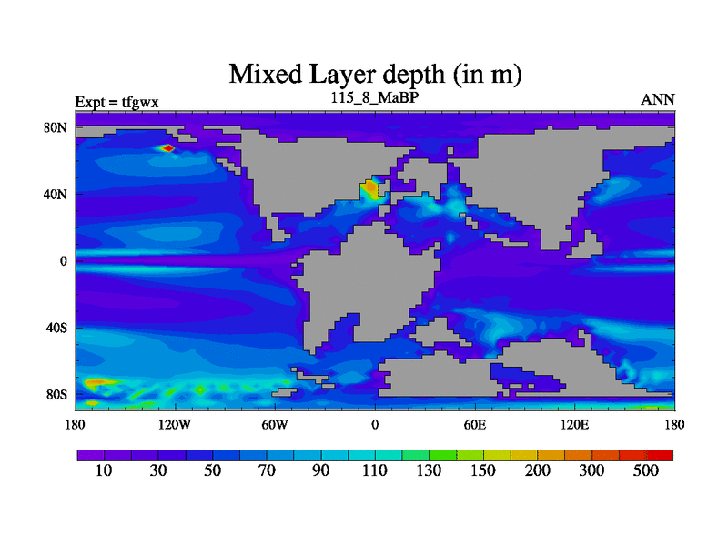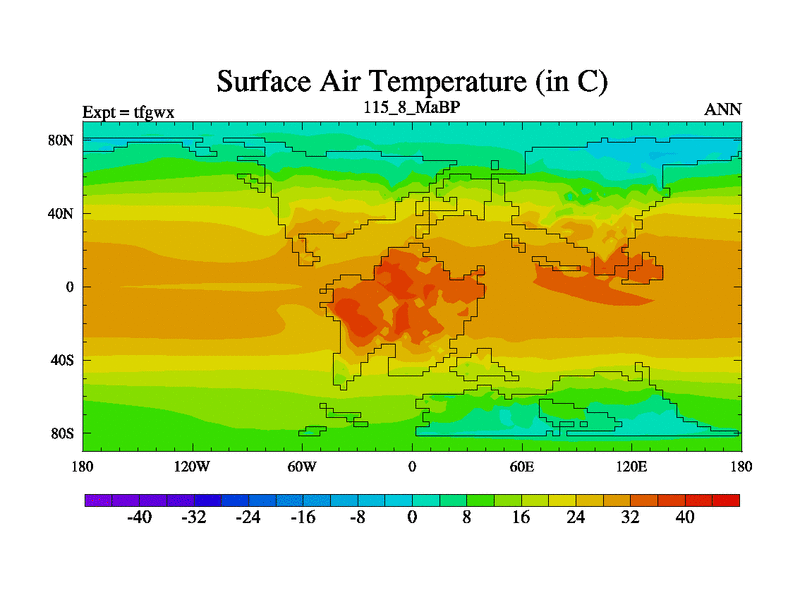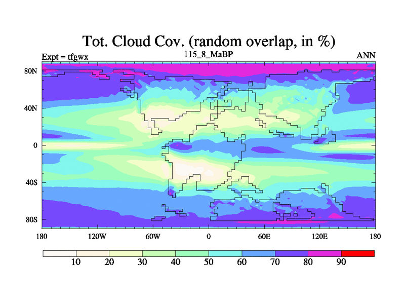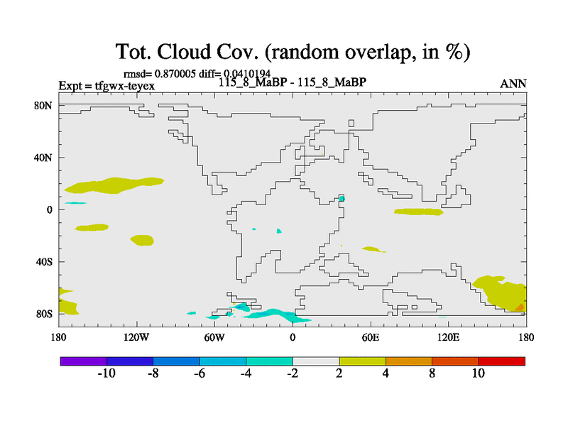 This is the 115.8 Ma simulation using the Scotese palaeogeographies and revised CCN etc. This version has islands included. Started from end of teyex.